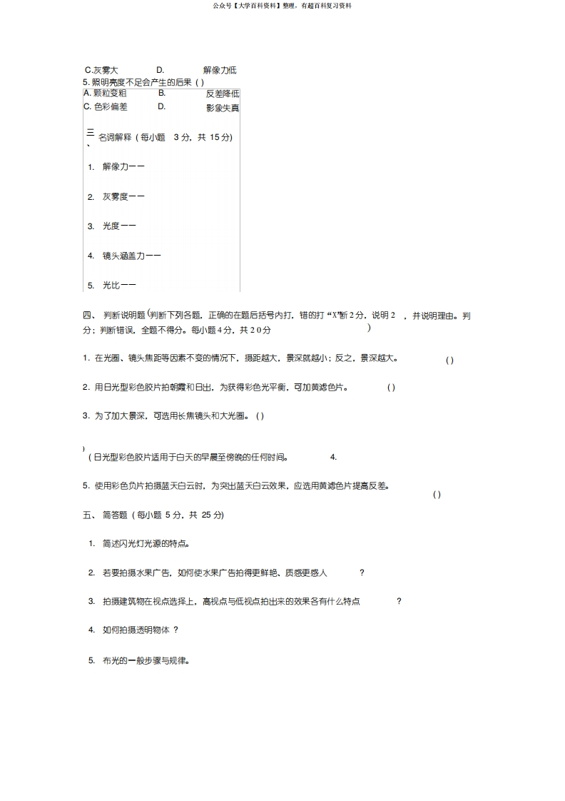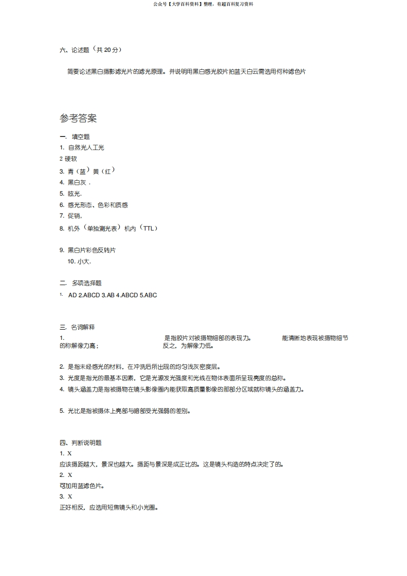摄影基础理论考题附答案猴哥6个月前发布关注私信0.20MB6页06441摄影基础理论考题附答案此内容为免费资源,请登录后查看¥0 登录查看免费资源 第1页 / 共6页 第2页 / 共6页 第3页 / 共6页 该文档为免费文档,您可直接下载完整版进行阅读 © 版权声明文章版权归作者所有,未经允许请勿转载。THE END期末复习 喜欢就支持一下吧点赞41赞赏 分享QQ空间微博QQ好友海报分享复制链接收藏