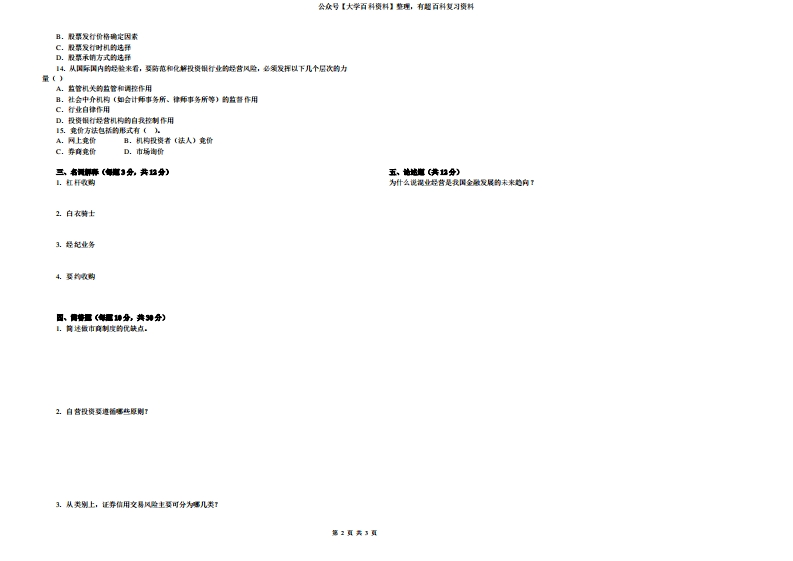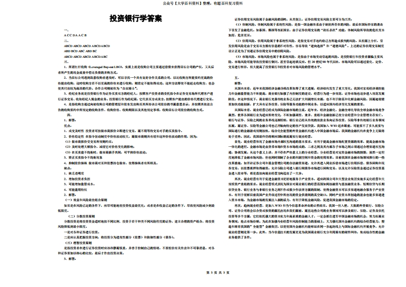 《投资银行学》期末考试及答案猴哥6个月前发布关注私信0.20MB3页09419《投资银行学》期末考试及答案此内容为免费资源,请登录后查看¥0 登录查看免费资源 第1页 / 共3页 第2页 / 共3页 第3页 / 共3页 已完成全部阅读,共3页 © 版权声明文章版权归作者所有,未经允许请勿转载。THE END期末复习 喜欢就支持一下吧点赞19赞赏 分享QQ空间微博QQ好友海报分享复制链接收藏