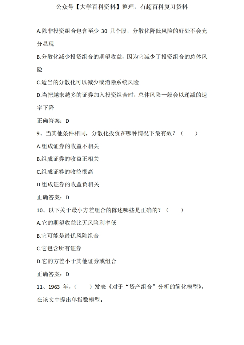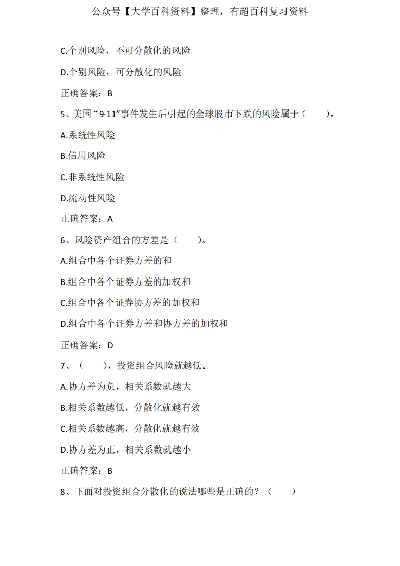 投资学(投资组合理论与实践)期末单元测试与答案猴哥6个月前发布关注私信0.20MB7页05333投资学(投资组合理论与实践)期末单元测试与答案此内容为免费资源,请登录后查看¥0 登录查看免费资源 第1页 / 共7页 第2页 / 共7页 第3页 / 共7页 该文档为免费文档,您可直接下载完整版进行阅读 © 版权声明文章版权归作者所有,未经允许请勿转载。THE END期末复习 喜欢就支持一下吧点赞33赞赏 分享QQ空间微博QQ好友海报分享复制链接收藏