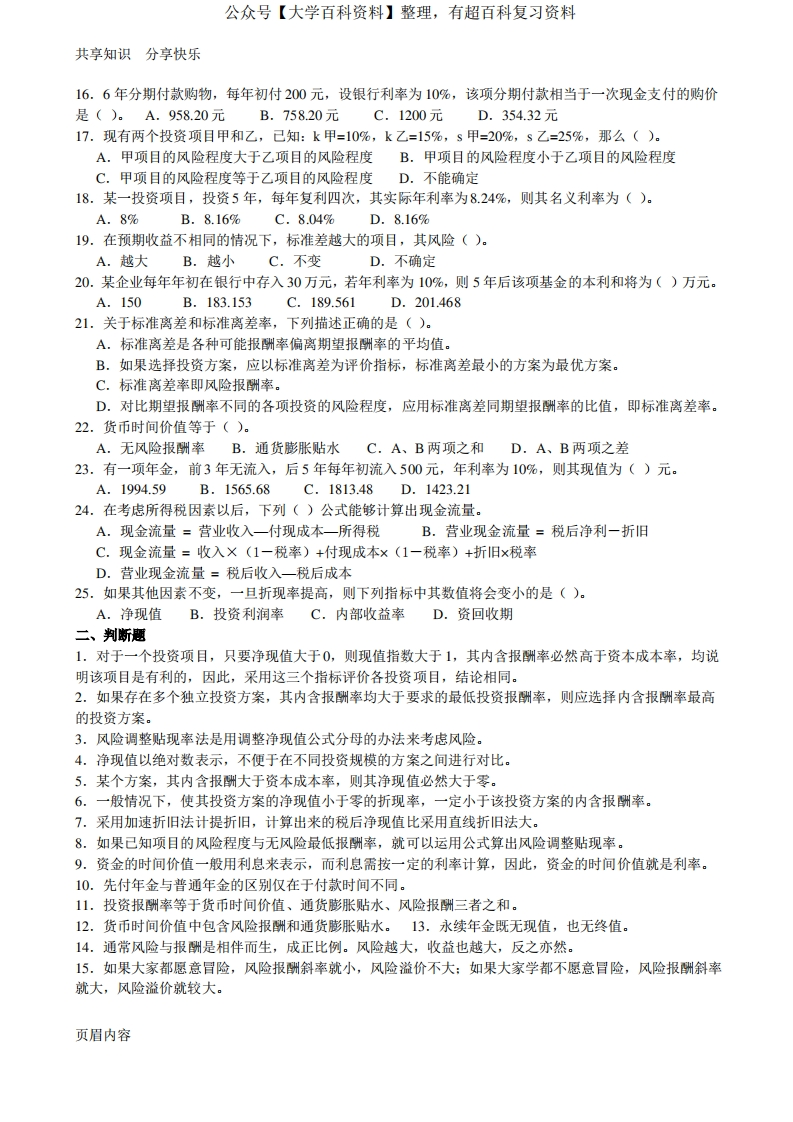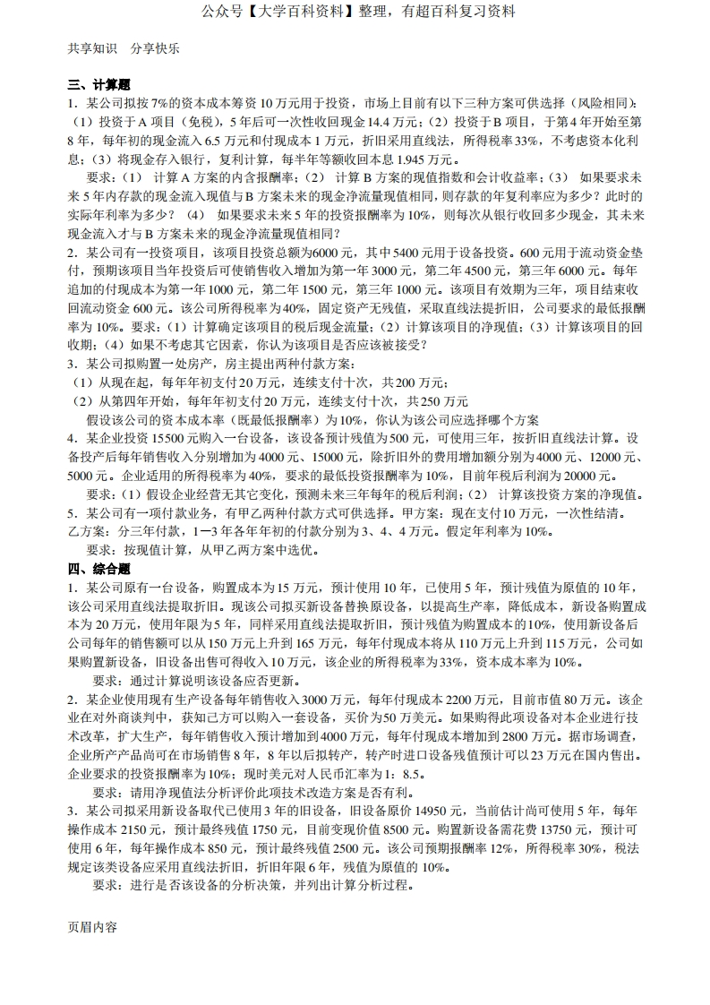 投资分析决策-习题(附详细答案)猴哥6个月前发布关注私信0.26MB5页09411投资分析决策-习题(附详细答案)此内容为免费资源,请登录后查看¥0 登录查看免费资源 第1页 / 共5页 第2页 / 共5页 第3页 / 共5页 该文档为免费文档,您可直接下载完整版进行阅读 © 版权声明文章版权归作者所有,未经允许请勿转载。THE END期末复习 喜欢就支持一下吧点赞11赞赏 分享QQ空间微博QQ好友海报分享复制链接收藏