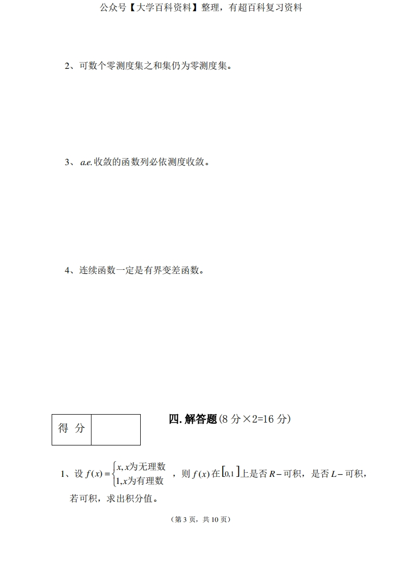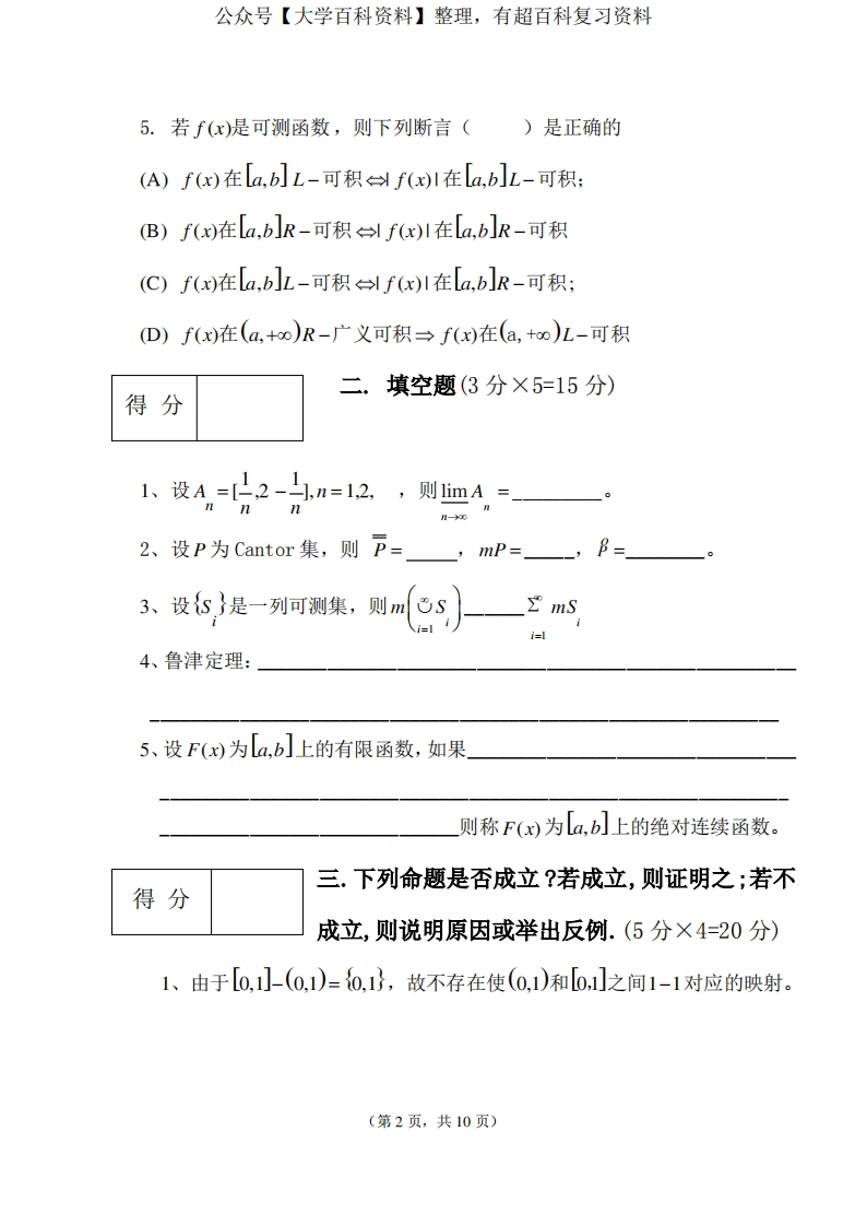 实变函数试卷及参考答案猴哥6个月前发布关注私信0.38MB10页03913实变函数试卷及参考答案此内容为免费资源,请登录后查看¥0 登录查看免费资源 第1页 / 共10页 第2页 / 共10页 第3页 / 共10页 该文档为免费文档,您可直接下载完整版进行阅读 © 版权声明文章版权归作者所有,未经允许请勿转载。THE END期末复习 喜欢就支持一下吧点赞13赞赏 分享QQ空间微博QQ好友海报分享复制链接收藏