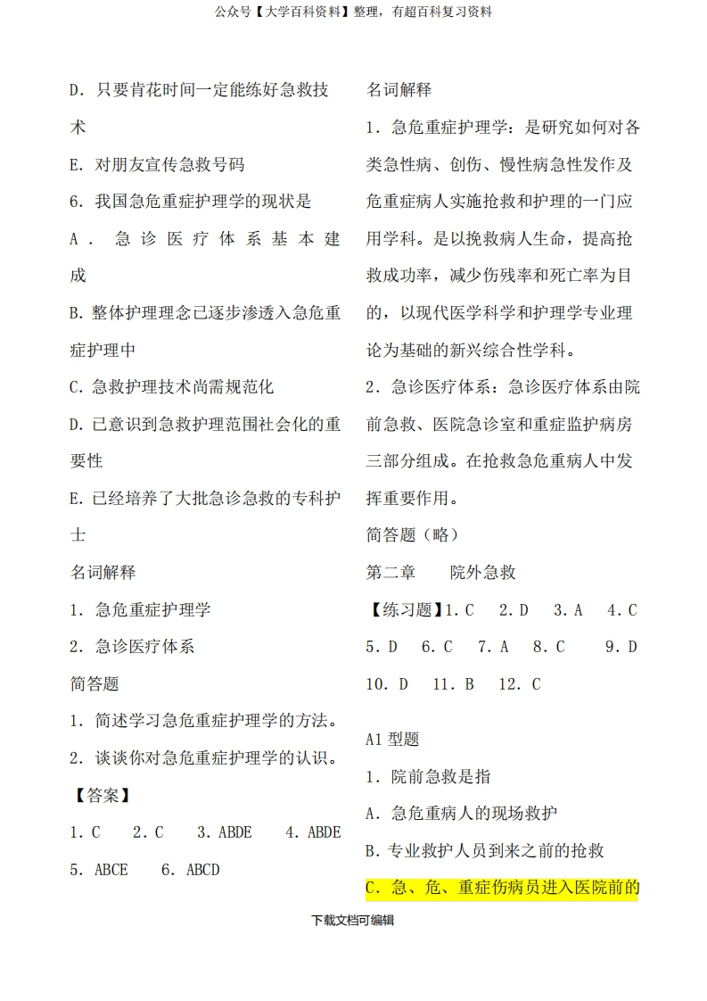 急危重症护理学试题(含答案)猴哥6个月前发布关注私信1.94MB49页09115急危重症护理学试题(含答案)此内容为免费资源,请登录后查看¥0 登录查看免费资源 第1页 / 共49页 第2页 / 共49页 第3页 / 共49页 该文档为免费文档,您可直接下载完整版进行阅读 © 版权声明文章版权归作者所有,未经允许请勿转载。THE END期末复习 喜欢就支持一下吧点赞15赞赏 分享QQ空间微博QQ好友海报分享复制链接收藏