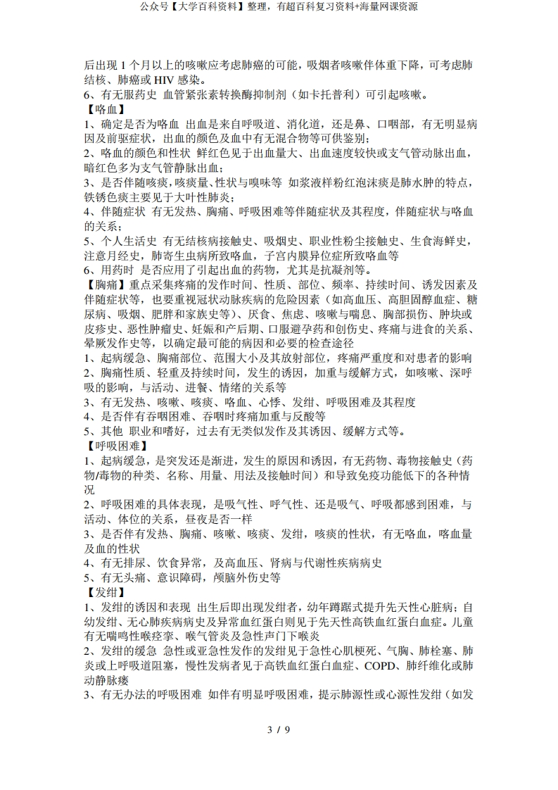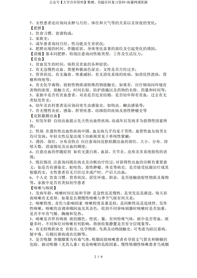 临床诊断学常见症状问诊要点-学习资源网 - 分享优质学习资料