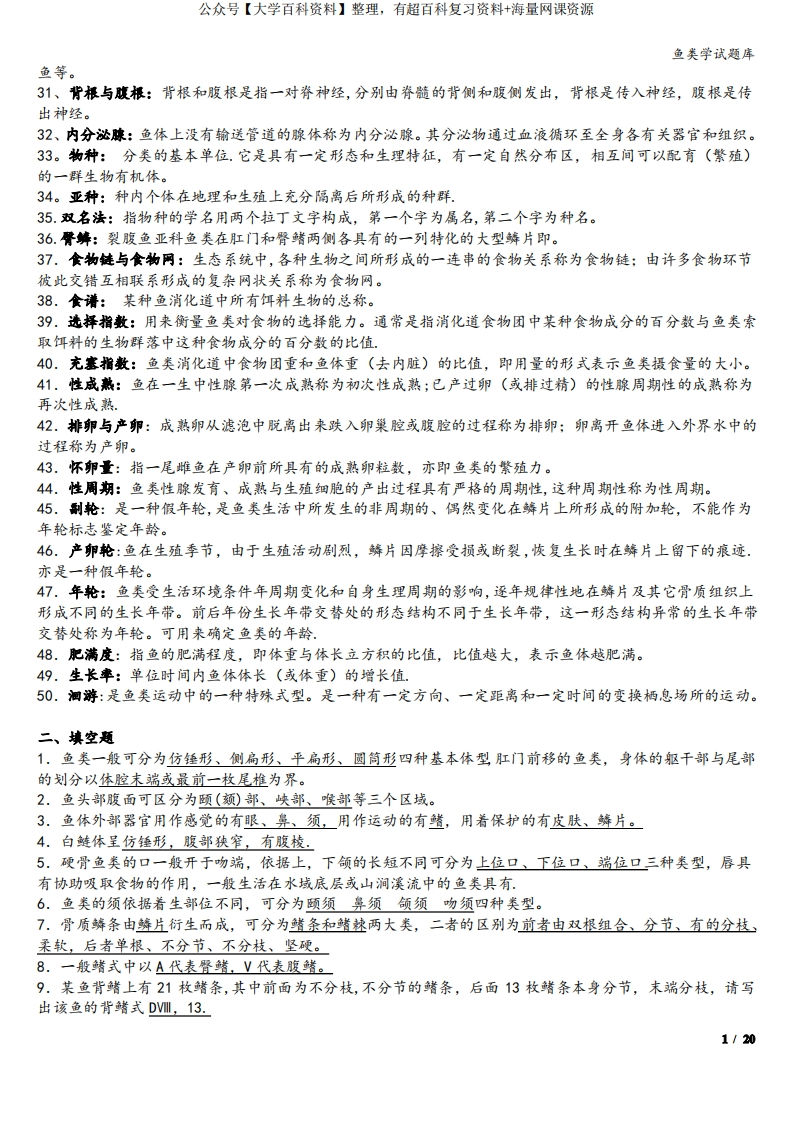 鱼类学试题库猴哥6个月前发布关注私信0.48MB6页07049鱼类学试题库此内容为免费资源,请登录后查看¥0 登录查看免费资源 第1页 / 共6页 第2页 / 共6页 第3页 / 共6页 该文档为免费文档,您可直接下载完整版进行阅读 © 版权声明文章版权归作者所有,未经允许请勿转载。THE END期末复习 喜欢就支持一下吧点赞49赞赏 分享QQ空间微博QQ好友海报分享复制链接收藏