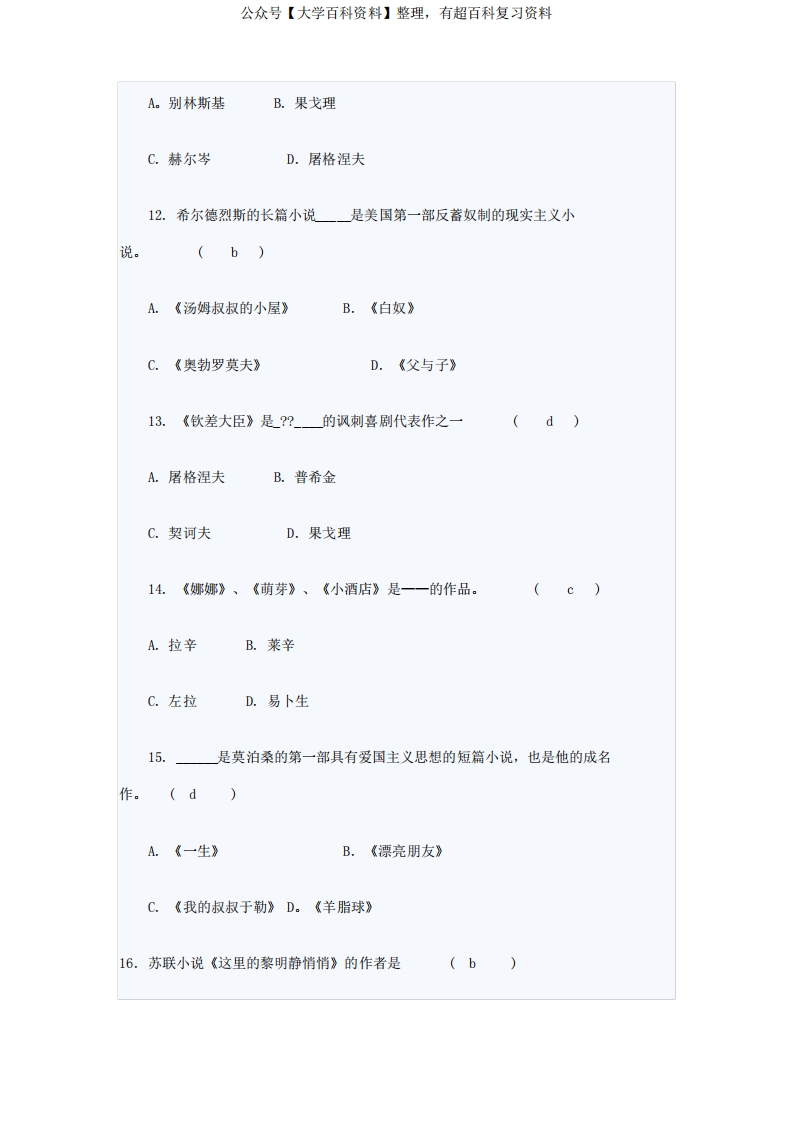 外国文学史试题及答案(1)猴哥6个月前发布关注私信0.43MB11页03813外国文学史试题及答案(1)此内容为免费资源,请登录后查看¥0 登录查看免费资源 第1页 / 共11页 第2页 / 共11页 第3页 / 共11页 该文档为免费文档,您可直接下载完整版进行阅读 © 版权声明文章版权归作者所有,未经允许请勿转载。THE END期末复习 喜欢就支持一下吧点赞13赞赏 分享QQ空间微博QQ好友海报分享复制链接收藏