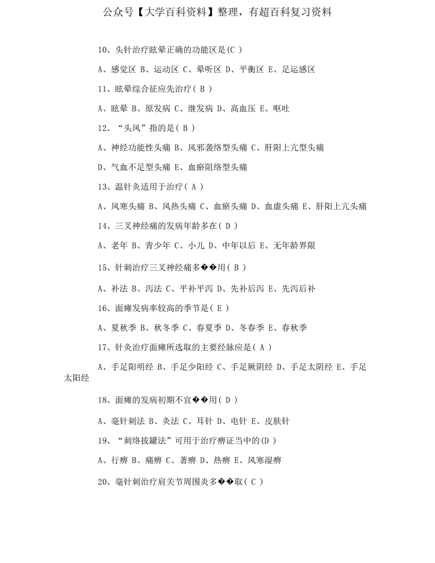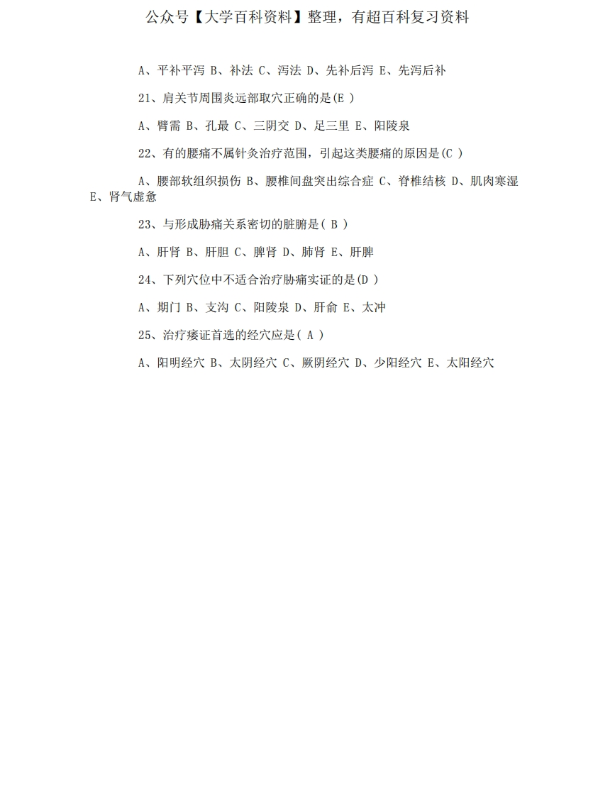 中医执业医师考试针灸推拿知识点练习试题及答案-学习资源网 - 分享优质学习资料