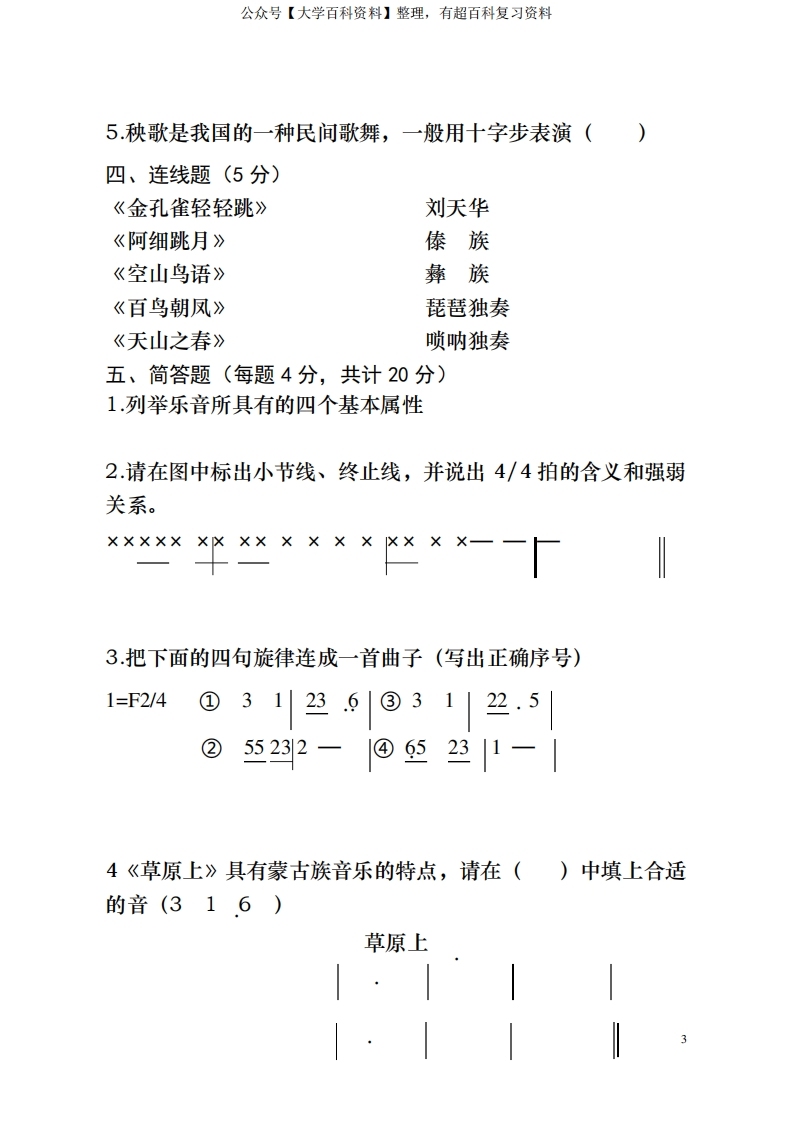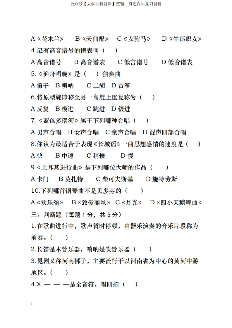 音乐试题及答案猴哥6个月前发布关注私信0.70MB7页09314音乐试题及答案此内容为免费资源,请登录后查看¥0 登录查看免费资源 第1页 / 共7页 第2页 / 共7页 第3页 / 共7页 该文档为免费文档,您可直接下载完整版进行阅读 © 版权声明文章版权归作者所有,未经允许请勿转载。THE END期末复习 喜欢就支持一下吧点赞14赞赏 分享QQ空间微博QQ好友海报分享复制链接收藏