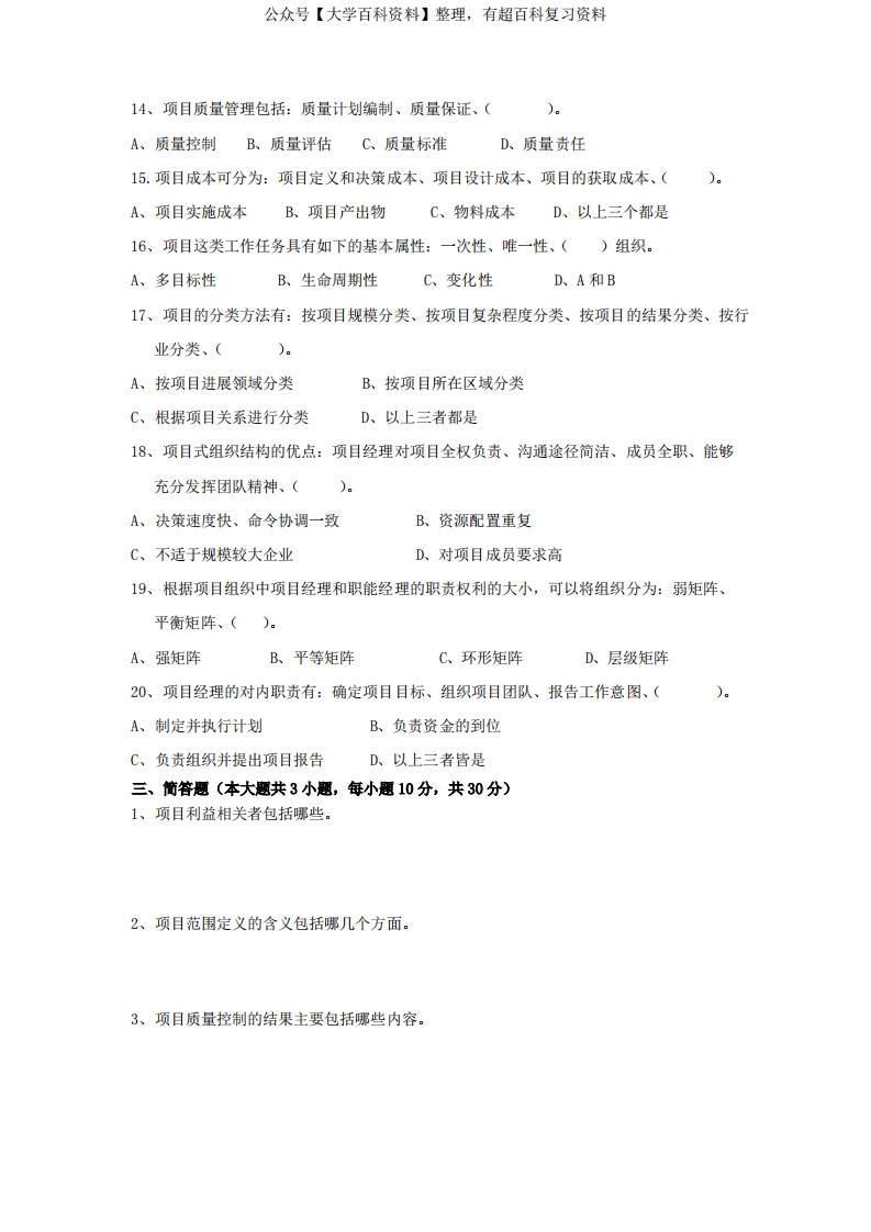 《项目管理》期末考试试卷附答案-学习资源网 - 分享优质学习资料