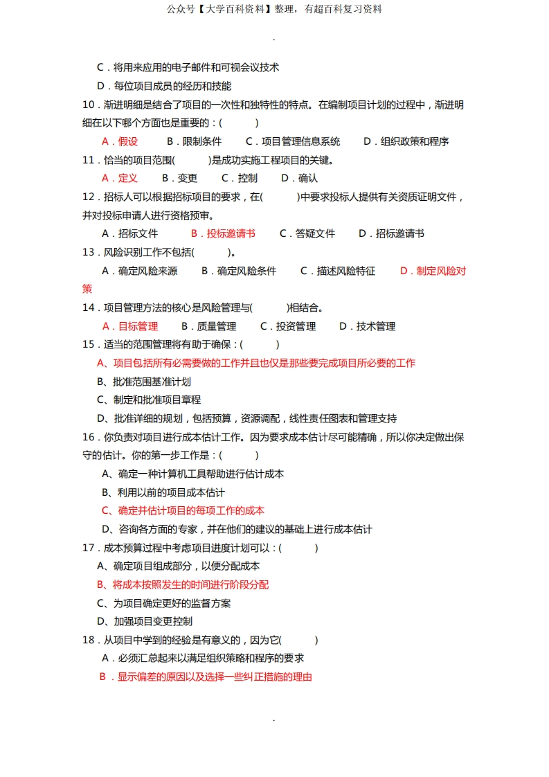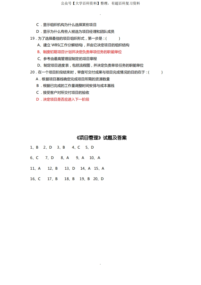 《项目管理》试题及答案猴哥6个月前发布关注私信0.29MB3页07112《项目管理》试题及答案此内容为免费资源,请登录后查看¥0 登录查看免费资源 第1页 / 共3页 第2页 / 共3页 第3页 / 共3页 已完成全部阅读,共3页 © 版权声明文章版权归作者所有,未经允许请勿转载。THE END期末复习 喜欢就支持一下吧点赞12赞赏 分享QQ空间微博QQ好友海报分享复制链接收藏