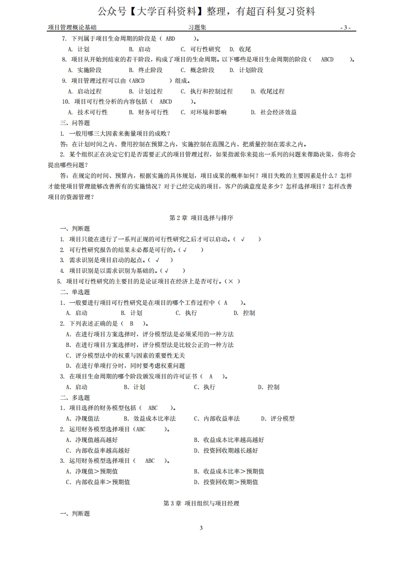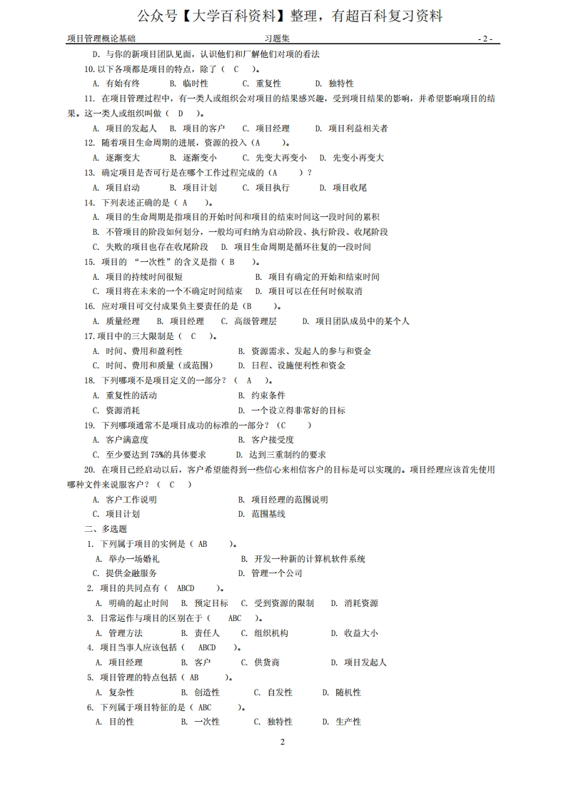 项目管理概论基础-习题集有答案猴哥6个月前发布关注私信1.20MB22页04965项目管理概论基础-习题集有答案此内容为免费资源,请登录后查看¥0 登录查看免费资源 第1页 / 共22页 第2页 / 共22页 第3页 / 共22页 该文档为免费文档,您可直接下载完整版进行阅读 © 版权声明文章版权归作者所有,未经允许请勿转载。THE END期末复习 喜欢就支持一下吧点赞65赞赏 分享QQ空间微博QQ好友海报分享复制链接收藏