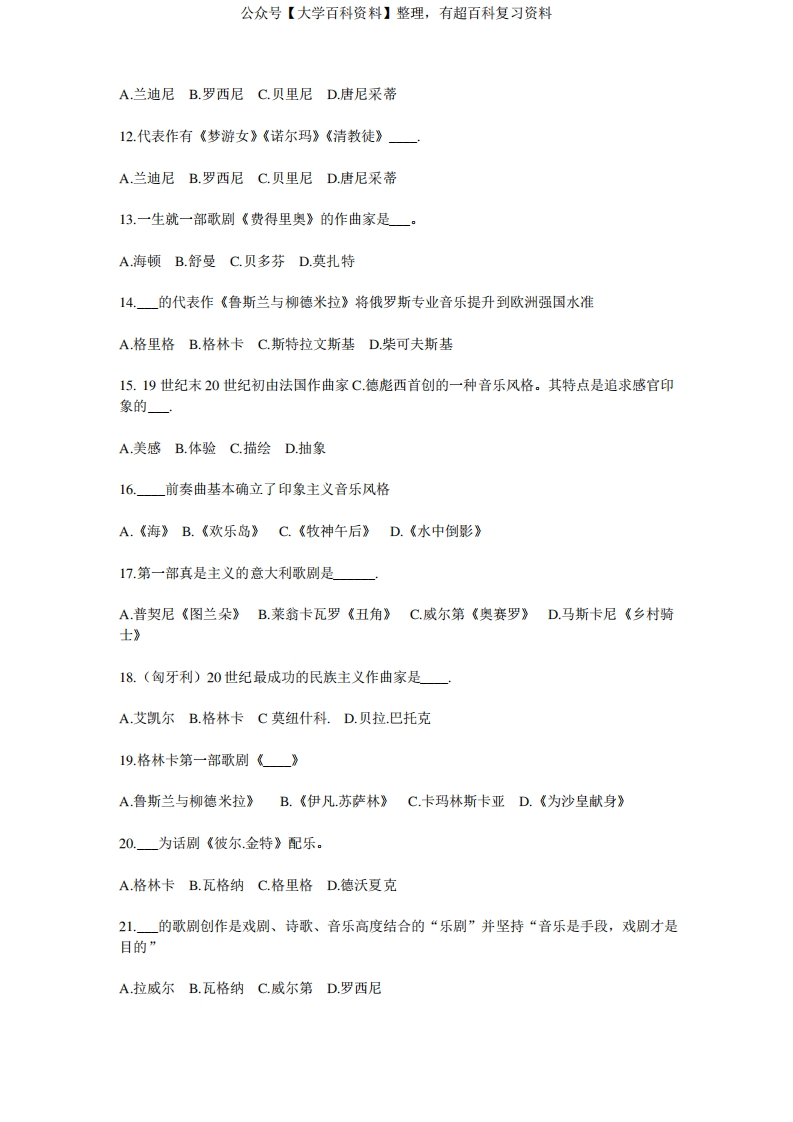 西方音乐史试卷及答案-学习资源网 - 分享优质学习资料
