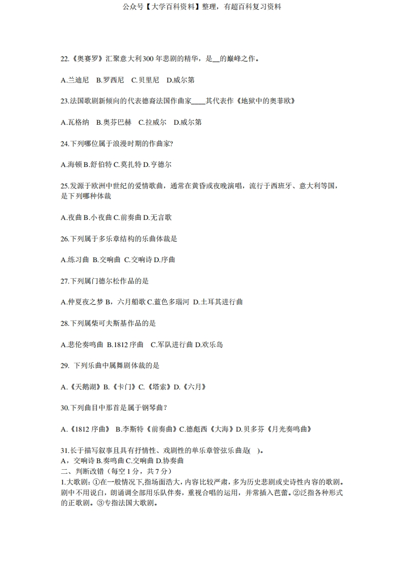 西方音乐史试卷及答案