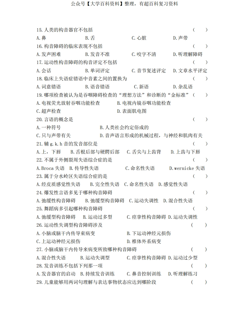 语言治疗学练习题及答案-学习资源网 - 分享优质学习资料