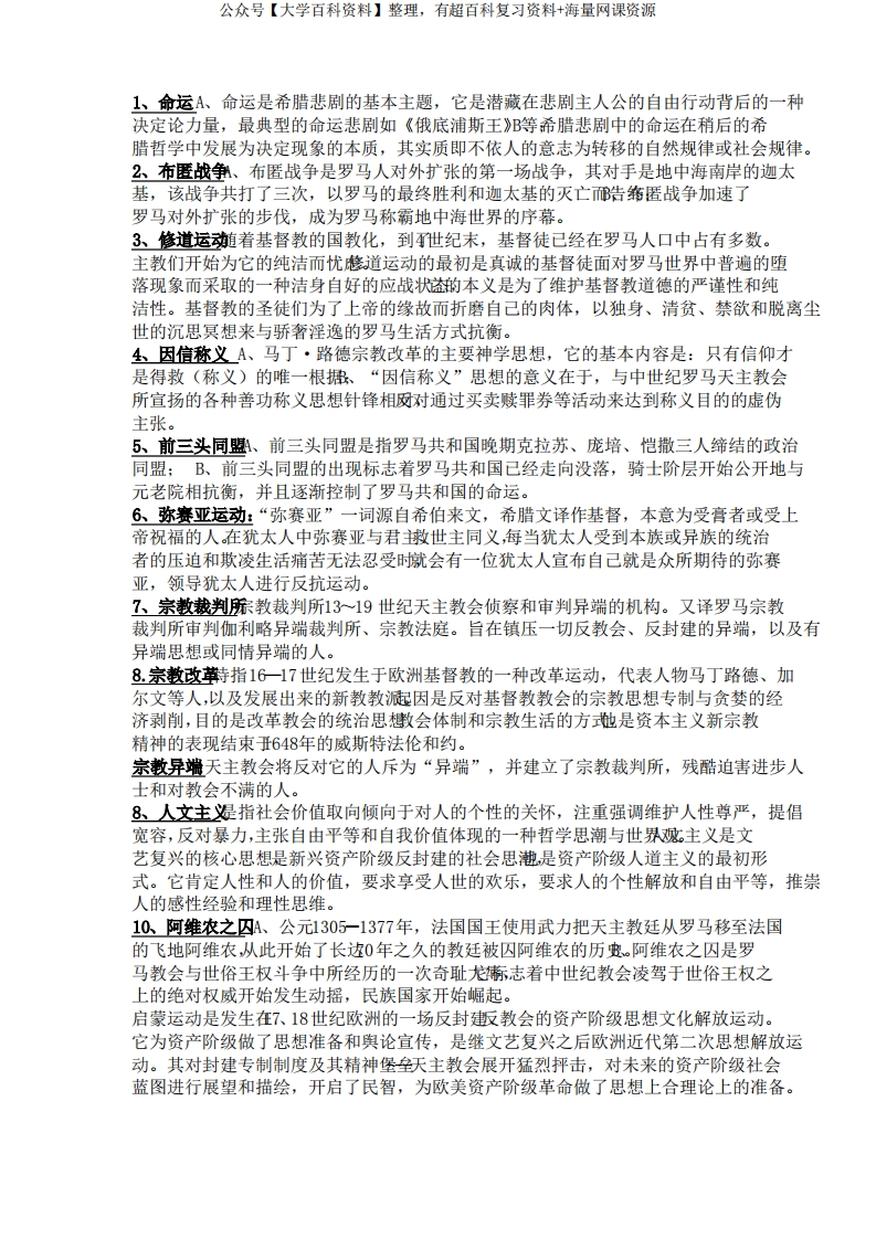西方文化概论名词解释(必考知识点)猴哥6个月前发布关注私信0.30MB4页05141西方文化概论名词解释(必考知识点)此内容为免费资源,请登录后查看¥0 登录查看免费资源 第1页 / 共4页 第2页 / 共4页 第3页 / 共4页 该文档为免费文档,您可直接下载完整版进行阅读 © 版权声明文章版权归作者所有,未经允许请勿转载。THE END期末复习 喜欢就支持一下吧点赞41赞赏 分享QQ空间微博QQ好友海报分享复制链接收藏