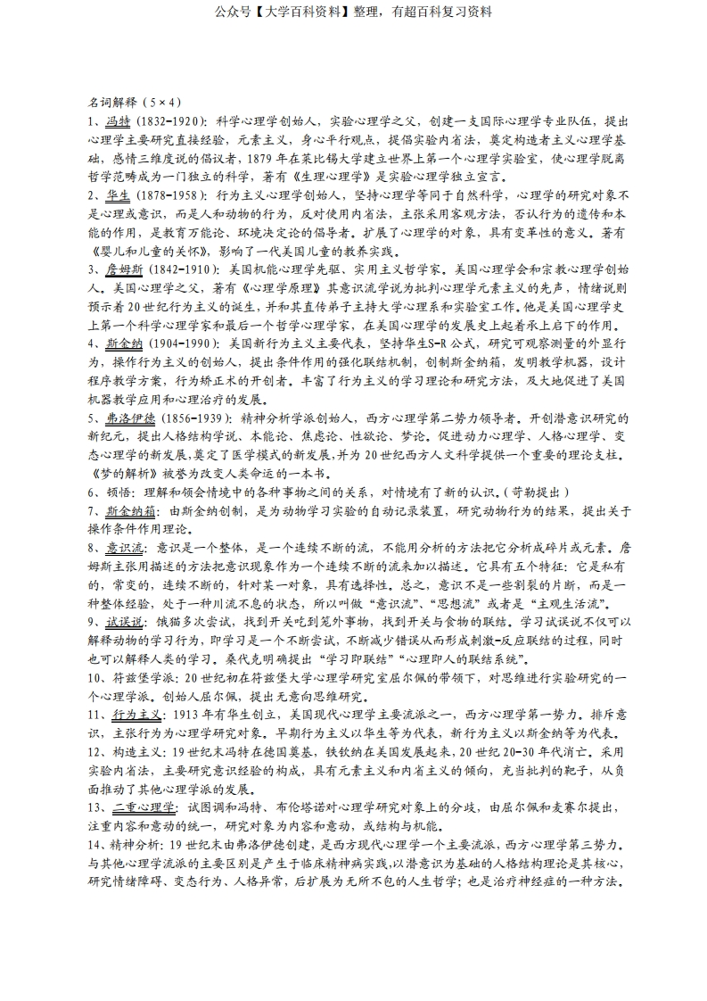 西方心理学史复习资料猴哥6个月前发布关注私信0.34MB4页05364西方心理学史复习资料此内容为免费资源,请登录后查看¥0 登录查看免费资源 第1页 / 共4页 第2页 / 共4页 第3页 / 共4页 该文档为免费文档,您可直接下载完整版进行阅读 © 版权声明文章版权归作者所有,未经允许请勿转载。THE END期末复习 喜欢就支持一下吧点赞64赞赏 分享QQ空间微博QQ好友海报分享复制链接收藏