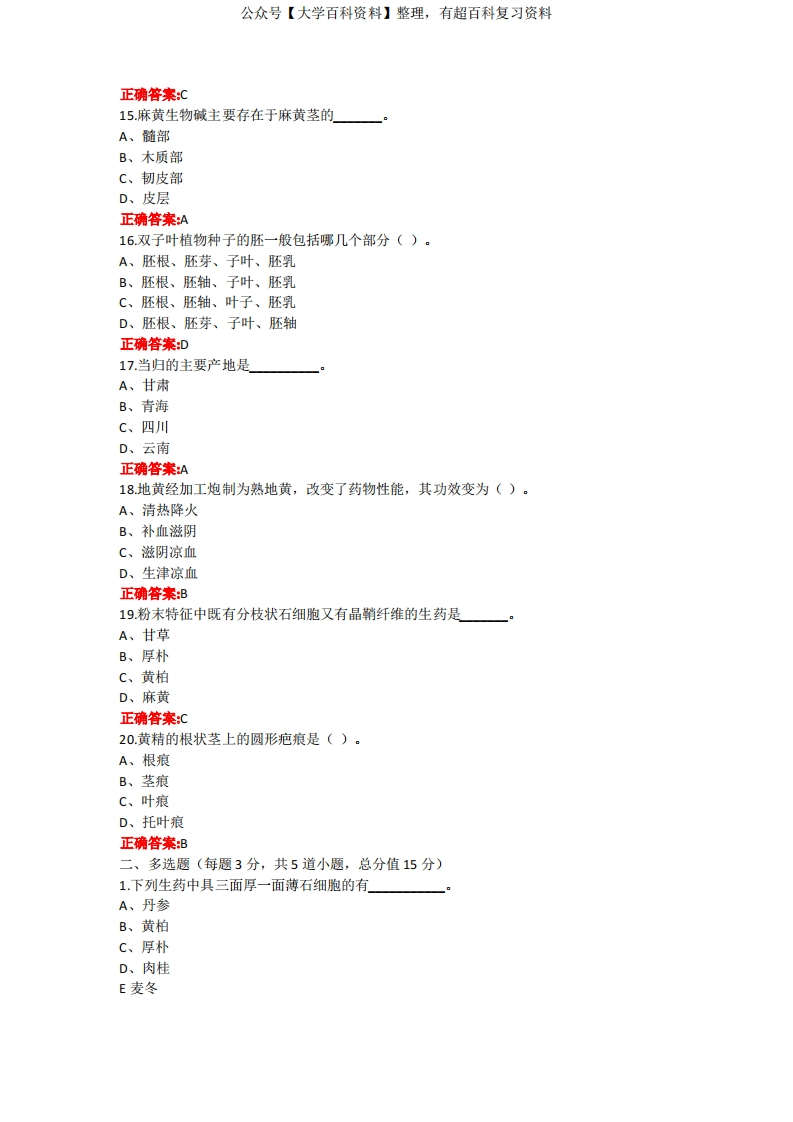 药用植物学期末考试复习题及参考答案猴哥6个月前发布关注私信0.18MB4页06752药用植物学期末考试复习题及参考答案此内容为免费资源,请登录后查看¥0 登录查看免费资源 第1页 / 共4页 第2页 / 共4页 第3页 / 共4页 该文档为免费文档,您可直接下载完整版进行阅读 © 版权声明文章版权归作者所有,未经允许请勿转载。THE END期末复习 喜欢就支持一下吧点赞52赞赏 分享QQ空间微博QQ好友海报分享复制链接收藏