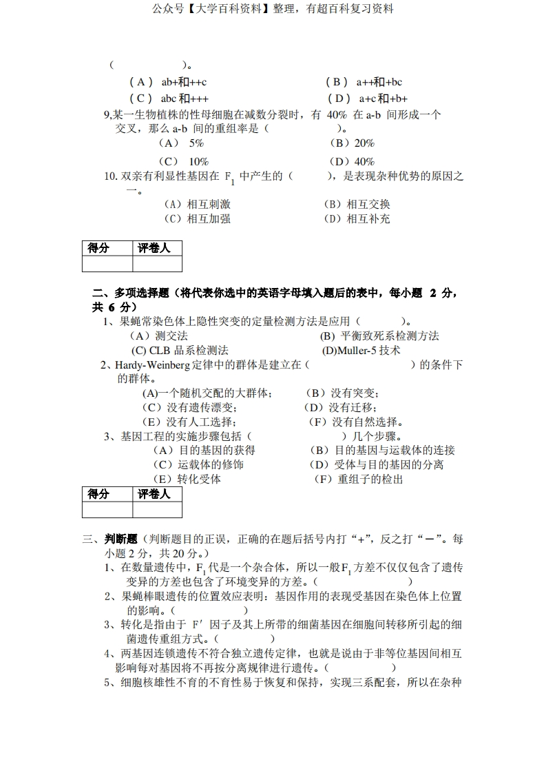 遗传学期末试卷四套(答案全)猴哥6个月前发布关注私信1.29MB34页04916遗传学期末试卷四套(答案全)此内容为免费资源,请登录后查看¥0 登录查看免费资源 第1页 / 共34页 第2页 / 共34页 第3页 / 共34页 该文档为免费文档,您可直接下载完整版进行阅读 © 版权声明文章版权归作者所有,未经允许请勿转载。THE END期末复习 喜欢就支持一下吧点赞16赞赏 分享QQ空间微博QQ好友海报分享复制链接收藏
