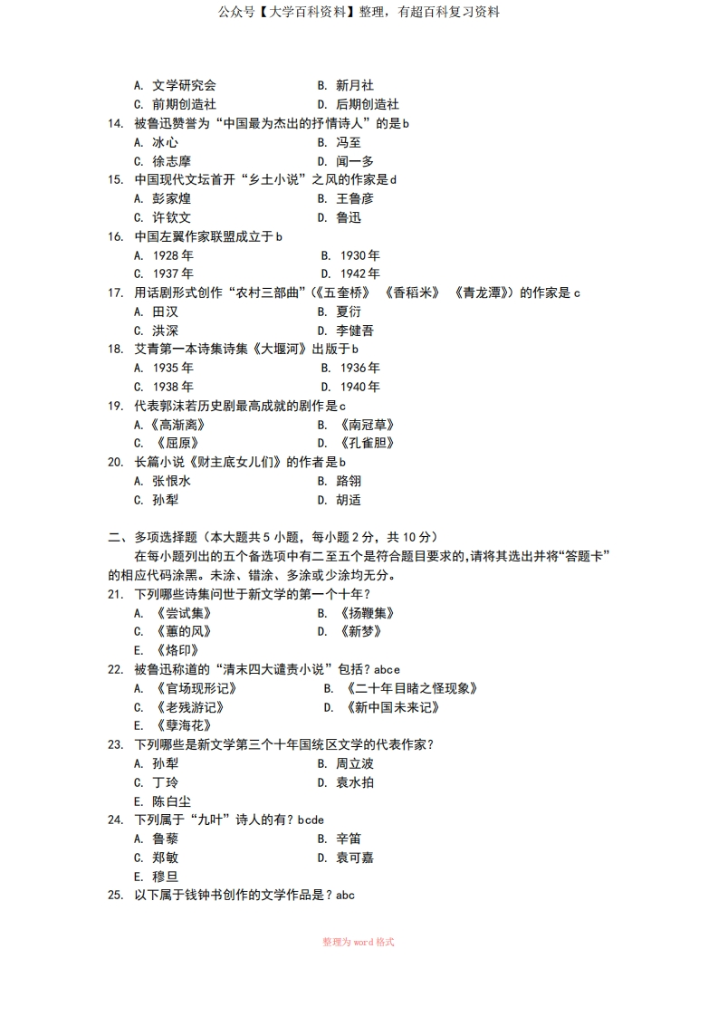 中国现代文学史试题及答案猴哥6个月前发布关注私信0.21MB4页05842中国现代文学史试题及答案此内容为免费资源,请登录后查看¥0 登录查看免费资源 第1页 / 共4页 第2页 / 共4页 第3页 / 共4页 该文档为免费文档,您可直接下载完整版进行阅读 © 版权声明文章版权归作者所有,未经允许请勿转载。THE END期末复习 喜欢就支持一下吧点赞42赞赏 分享QQ空间微博QQ好友海报分享复制链接收藏