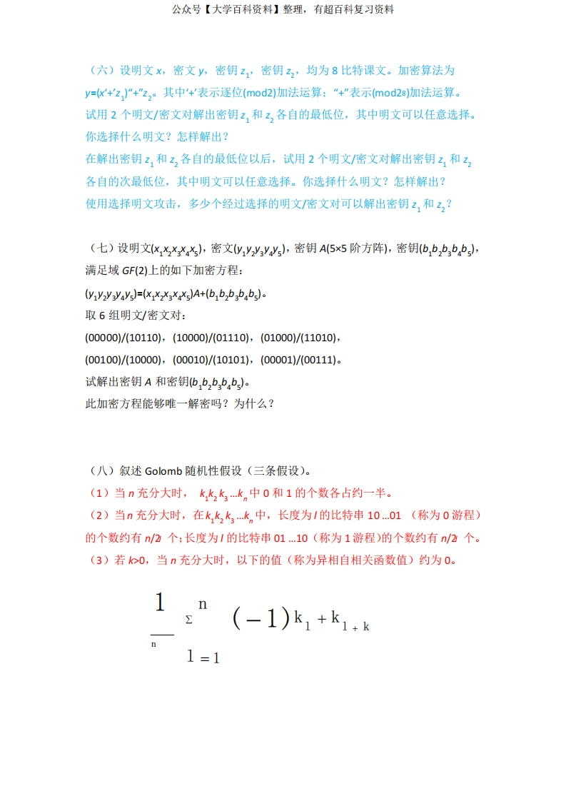 现代密码学复习题答案猴哥6个月前发布关注私信0.83MB20页08961现代密码学复习题答案此内容为免费资源,请登录后查看¥0 登录查看免费资源 第1页 / 共20页 第2页 / 共20页 第3页 / 共20页 该文档为免费文档,您可直接下载完整版进行阅读 © 版权声明文章版权归作者所有,未经允许请勿转载。THE END期末复习 喜欢就支持一下吧点赞61赞赏 分享QQ空间微博QQ好友海报分享复制链接收藏