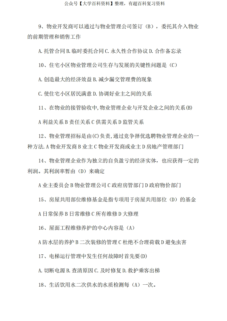 物业管理-知识题库猴哥6个月前发布关注私信1.05MB28页08213物业管理-知识题库此内容为免费资源,请登录后查看¥0 登录查看免费资源 第1页 / 共28页 第2页 / 共28页 第3页 / 共28页 该文档为免费文档,您可直接下载完整版进行阅读 © 版权声明文章版权归作者所有,未经允许请勿转载。THE END期末复习 喜欢就支持一下吧点赞13赞赏 分享QQ空间微博QQ好友海报分享复制链接收藏