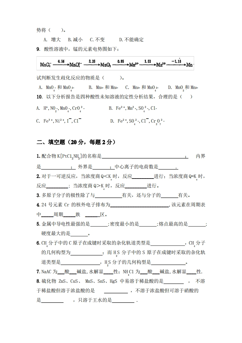 无机化学试题与答案猴哥6个月前发布关注私信0.42MB7页04811无机化学试题与答案此内容为免费资源,请登录后查看¥0 登录查看免费资源 第1页 / 共7页 第2页 / 共7页 第3页 / 共7页 该文档为免费文档,您可直接下载完整版进行阅读 © 版权声明文章版权归作者所有,未经允许请勿转载。THE END期末复习 喜欢就支持一下吧点赞11赞赏 分享QQ空间微博QQ好友海报分享复制链接收藏