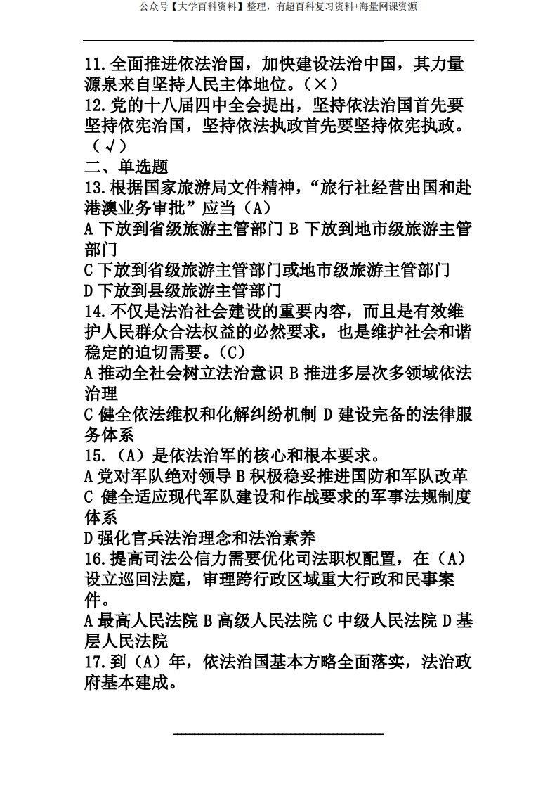 政策与法律法规题库-全面推进依法治国测试题题库(含答案)猴哥6个月前发布关注私信0.22MB6页09048政策与法律法规题库-全面推进依法治国测试题题库(含答案)此内容为免费资源,请登录后查看¥0 登录查看免费资源 第1页 / 共6页 第2页 / 共6页 第3页 / 共6页 该文档为免费文档,您可直接下载完整版进行阅读 © 版权声明文章版权归作者所有,未经允许请勿转载。THE END期末复习 喜欢就支持一下吧点赞48赞赏 分享QQ空间微博QQ好友海报分享复制链接收藏