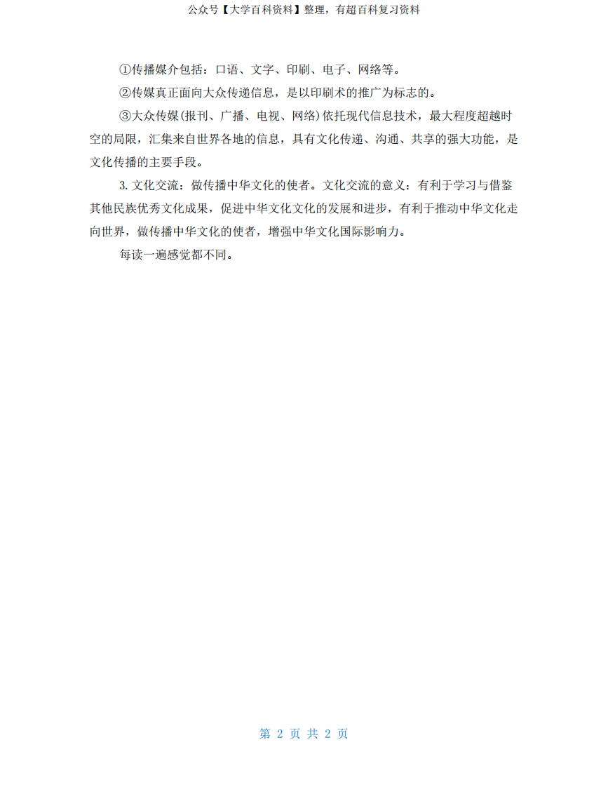 文化传播知识点总结猴哥6个月前发布关注私信95.94KB2页05366文化传播知识点总结此内容为免费资源,请登录后查看¥0 登录查看免费资源 第1页 / 共2页 第2页 / 共2页 已完成全部阅读,共2页 © 版权声明文章版权归作者所有,未经允许请勿转载。THE END期末复习 喜欢就支持一下吧点赞66赞赏 分享QQ空间微博QQ好友海报分享复制链接收藏