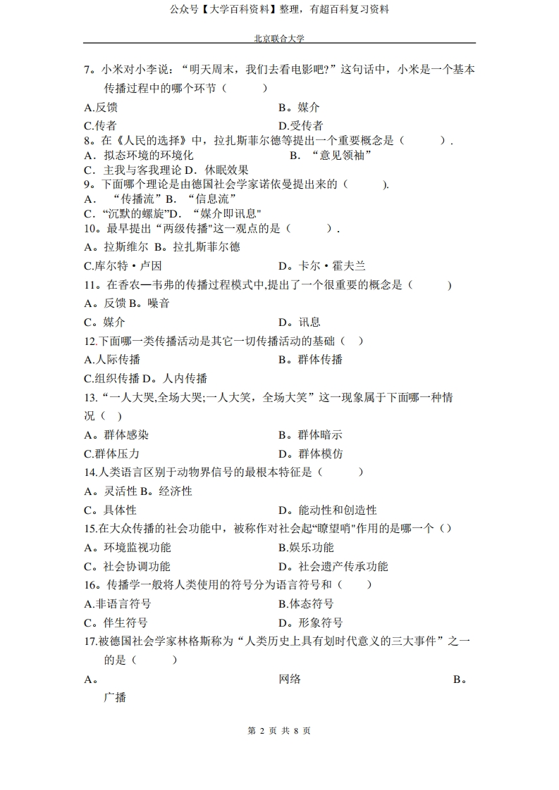 大学《文化传播学》试卷及答案猴哥6个月前发布关注私信0.39MB8页08843大学《文化传播学》试卷及答案此内容为免费资源,请登录后查看¥0 登录查看免费资源 第1页 / 共8页 第2页 / 共8页 第3页 / 共8页 该文档为免费文档,您可直接下载完整版进行阅读 © 版权声明文章版权归作者所有,未经允许请勿转载。THE END期末复习 喜欢就支持一下吧点赞43赞赏 分享QQ空间微博QQ好友海报分享复制链接收藏