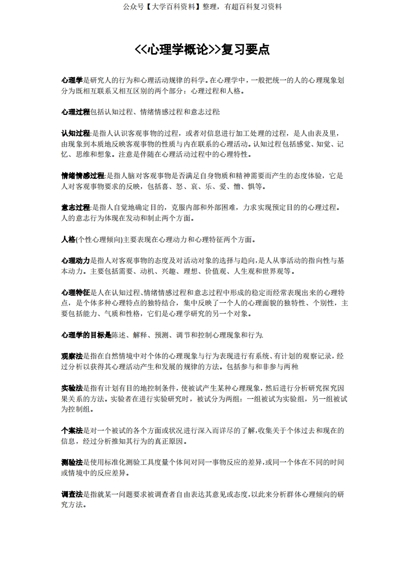 心理学概论复习要点-学习资源网 - 分享优质学习资料
