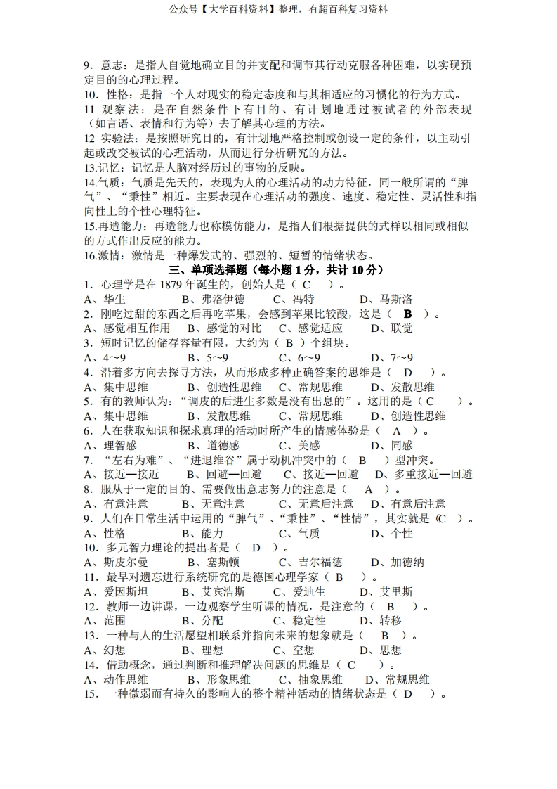 (完整word版)心理学概论考试试题及答案(word文档良心出品)猴哥6个月前发布关注私信0.53MB8页06053(完整word版)心理学概论考试试题及答案(word文档良心出品)此内容为免费资源,请登录后查看¥0 登录查看免费资源 第1页 / 共8页 第2页 / 共8页 第3页 / 共8页 该文档为免费文档,您可直接下载完整版进行阅读 © 版权声明文章版权归作者所有,未经允许请勿转载。THE END期末复习 喜欢就支持一下吧点赞53赞赏 分享QQ空间微博QQ好友海报分享复制链接收藏