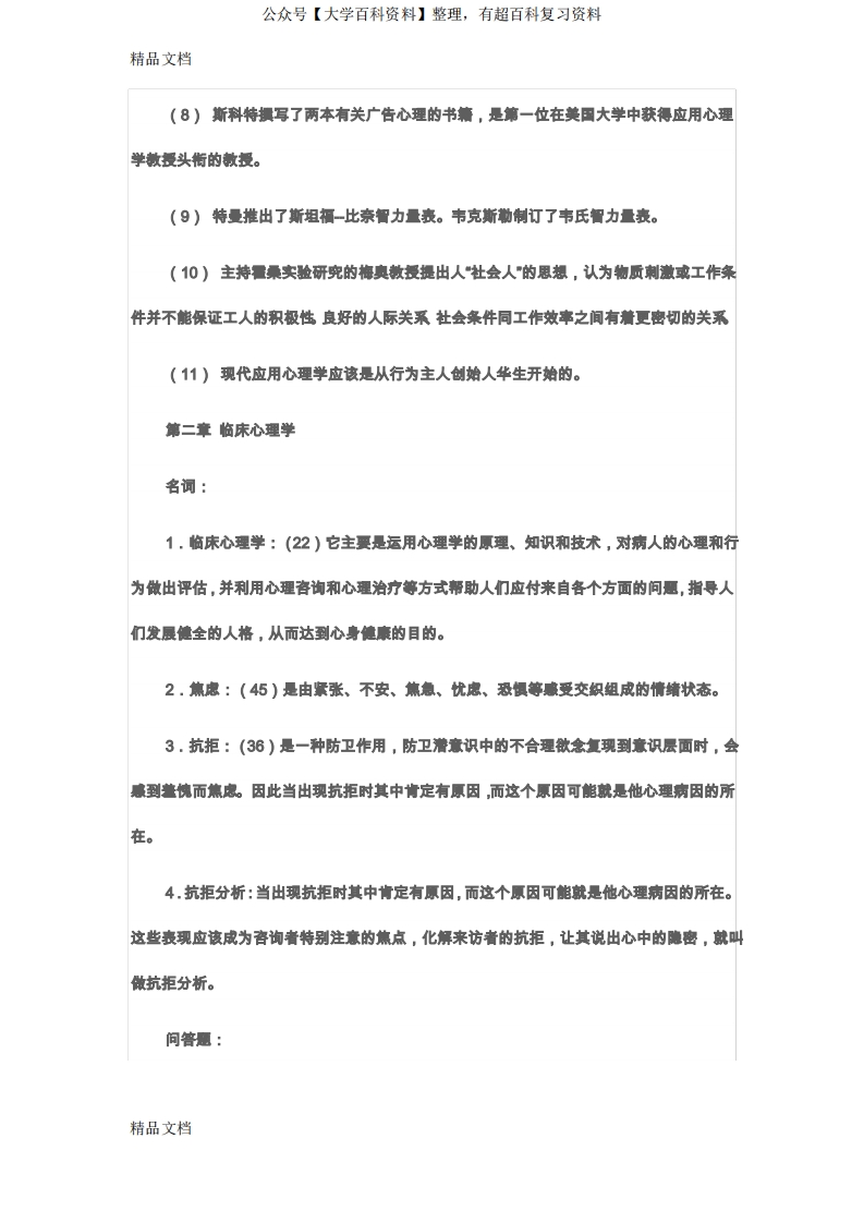 最新应用心理学基本知识点猴哥6个月前发布关注私信4.55MB47页05838最新应用心理学基本知识点此内容为免费资源,请登录后查看¥0 登录查看免费资源 第1页 / 共47页 第2页 / 共47页 第3页 / 共47页 该文档为免费文档,您可直接下载完整版进行阅读 © 版权声明文章版权归作者所有,未经允许请勿转载。THE END期末复习 喜欢就支持一下吧点赞38赞赏 分享QQ空间微博QQ好友海报分享复制链接收藏