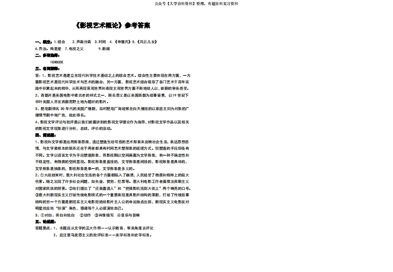 影视艺术概论试卷与参考答案猴哥6个月前发布关注私信0.15MB3页04240影视艺术概论试卷与参考答案此内容为免费资源,请登录后查看¥0 登录查看免费资源 第1页 / 共3页 第2页 / 共3页 第3页 / 共3页 已完成全部阅读,共3页 © 版权声明文章版权归作者所有,未经允许请勿转载。THE END期末复习 喜欢就支持一下吧点赞40赞赏 分享QQ空间微博QQ好友海报分享复制链接收藏