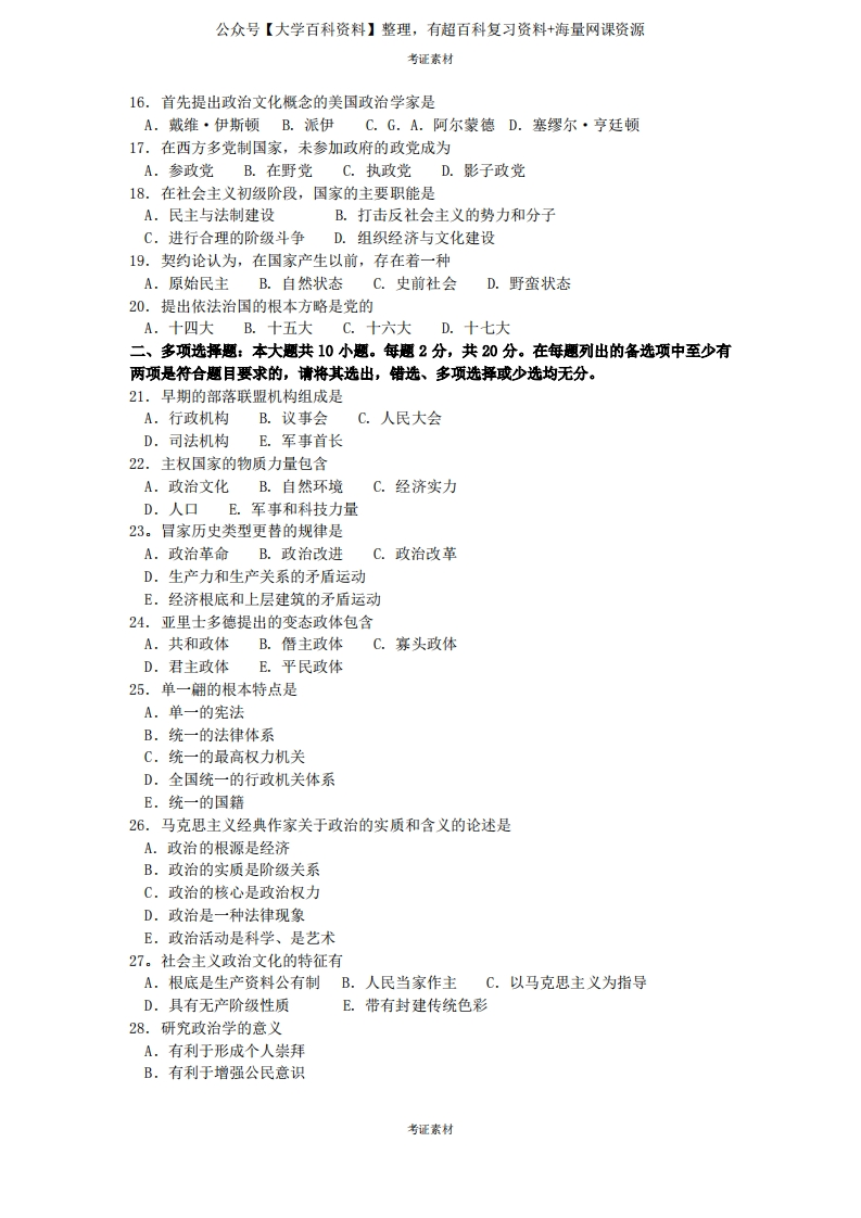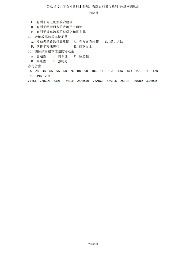 政治学概论试题及答案猴哥6个月前发布关注私信0.14MB3页03150政治学概论试题及答案此内容为免费资源,请登录后查看¥0 登录查看免费资源 第1页 / 共3页 第2页 / 共3页 第3页 / 共3页 已完成全部阅读,共3页 © 版权声明文章版权归作者所有,未经允许请勿转载。THE END期末复习 喜欢就支持一下吧点赞50赞赏 分享QQ空间微博QQ好友海报分享复制链接收藏