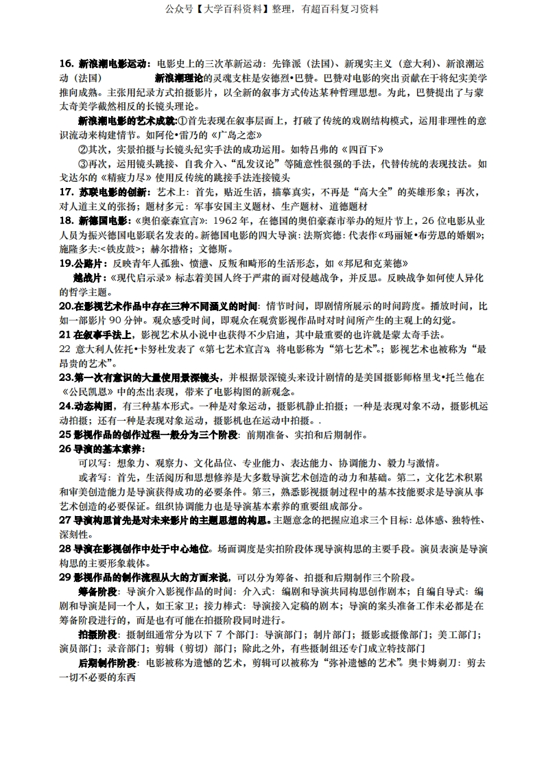 影视艺术概论复习知识点汇总猴哥6个月前发布关注私信1.19MB11页03260影视艺术概论复习知识点汇总此内容为免费资源,请登录后查看¥0 登录查看免费资源 第1页 / 共11页 第2页 / 共11页 第3页 / 共11页 该文档为免费文档,您可直接下载完整版进行阅读 © 版权声明文章版权归作者所有,未经允许请勿转载。THE END期末复习 喜欢就支持一下吧点赞60赞赏 分享QQ空间微博QQ好友海报分享复制链接收藏