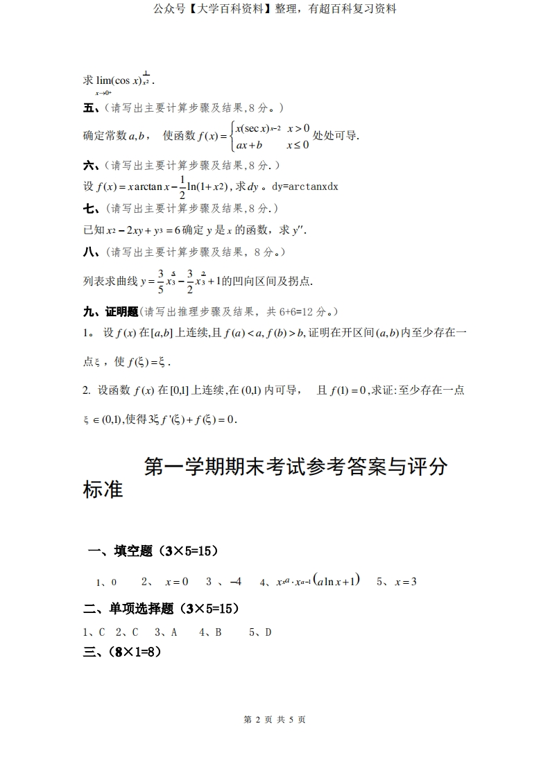 大一期末考试微积分试题带答案猴哥6个月前发布关注私信0.24MB5页05813大一期末考试微积分试题带答案此内容为免费资源,请登录后查看¥0 登录查看免费资源 第1页 / 共5页 第2页 / 共5页 第3页 / 共5页 该文档为免费文档,您可直接下载完整版进行阅读 © 版权声明文章版权归作者所有,未经允许请勿转载。THE END期末复习 喜欢就支持一下吧点赞13赞赏 分享QQ空间微博QQ好友海报分享复制链接收藏