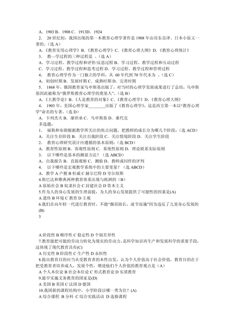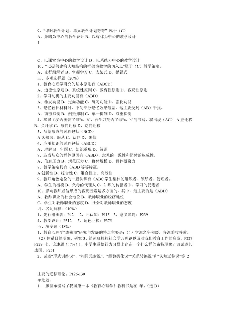 小学教育心理学试题及答案-学习资源网 - 分享优质学习资料