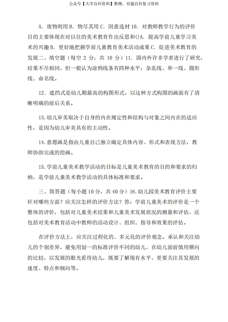 2022国家开放大学电大专科《学前儿童艺术教育(美术)》期末试题及答案(试卷号2506)猴哥6个月前发布关注私信0.60MB16页040242022国家开放大学电大专科《学前儿童艺术教育(美术)》期末试题及答案(试卷号2506)此内容为免费资源,请登录后查看¥0 登录查看免费资源 第1页 / 共16页 第2页 / 共16页 第3页 / 共16页 该文档为免费文档,您可直接下载完整版进行阅读 © 版权声明文章版权归作者所有,未经允许请勿转载。THE END期末复习 喜欢就支持一下吧点赞24赞赏 分享QQ空间微博QQ好友海报分享复制链接收藏