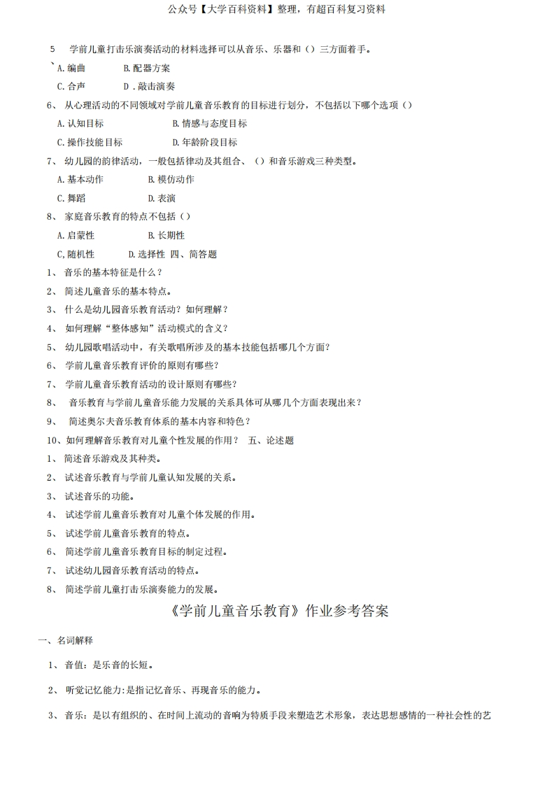 《学前儿童音乐教育》期末复习试题及答案.doc猴哥6个月前发布关注私信0.63MB15页03640《学前儿童音乐教育》期末复习试题及答案.doc此内容为免费资源,请登录后查看¥0 登录查看免费资源 第1页 / 共15页 第2页 / 共15页 第3页 / 共15页 该文档为免费文档,您可直接下载完整版进行阅读 © 版权声明文章版权归作者所有,未经允许请勿转载。THE END期末复习 喜欢就支持一下吧点赞40赞赏 分享QQ空间微博QQ好友海报分享复制链接收藏