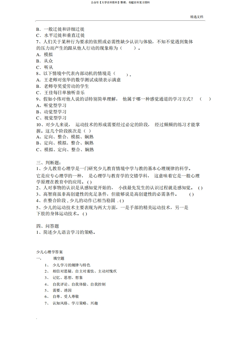 幼儿教育心理学试卷及答案猴哥6个月前发布关注私信0.16MB3页04517幼儿教育心理学试卷及答案此内容为免费资源,请登录后查看¥0 登录查看免费资源 第1页 / 共3页 第2页 / 共3页 第3页 / 共3页 已完成全部阅读,共3页 © 版权声明文章版权归作者所有,未经允许请勿转载。THE END期末复习 喜欢就支持一下吧点赞17赞赏 分享QQ空间微博QQ好友海报分享复制链接收藏