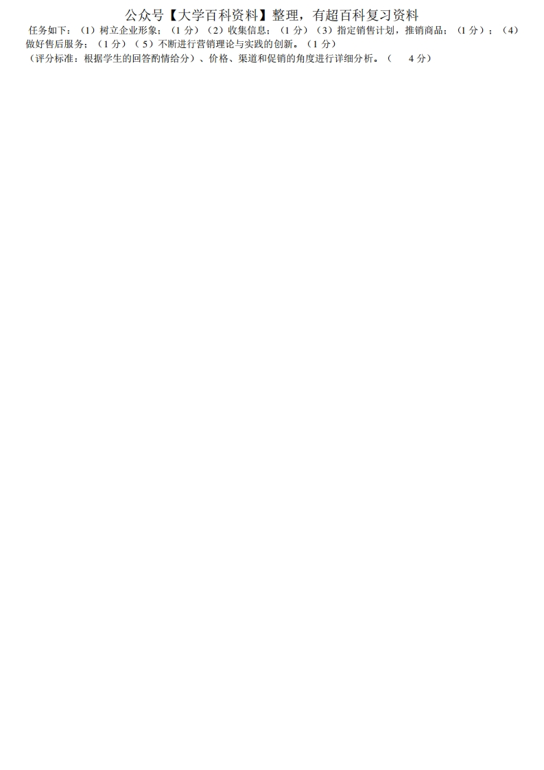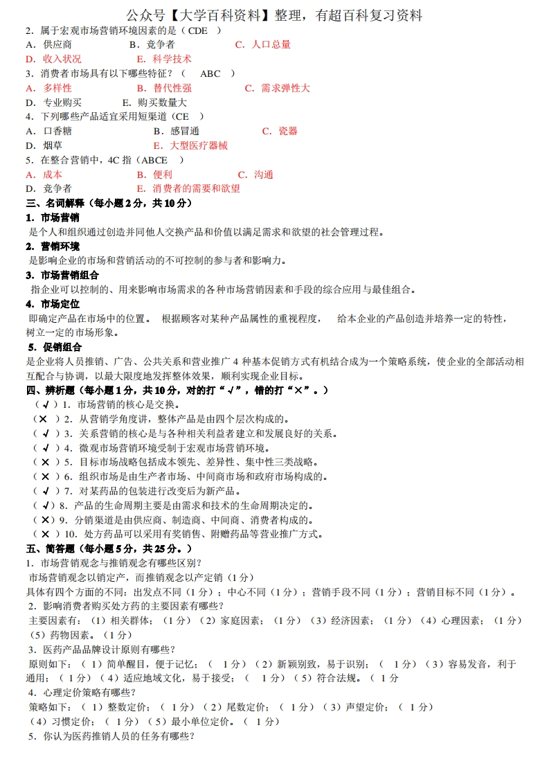 《医药市场营销学》试卷及答案猴哥6个月前发布关注私信0.14MB3页08728《医药市场营销学》试卷及答案此内容为免费资源,请登录后查看¥0 登录查看免费资源 第1页 / 共3页 第2页 / 共3页 第3页 / 共3页 已完成全部阅读,共3页 © 版权声明文章版权归作者所有,未经允许请勿转载。THE END期末复习 喜欢就支持一下吧点赞28赞赏 分享QQ空间微博QQ好友海报分享复制链接收藏