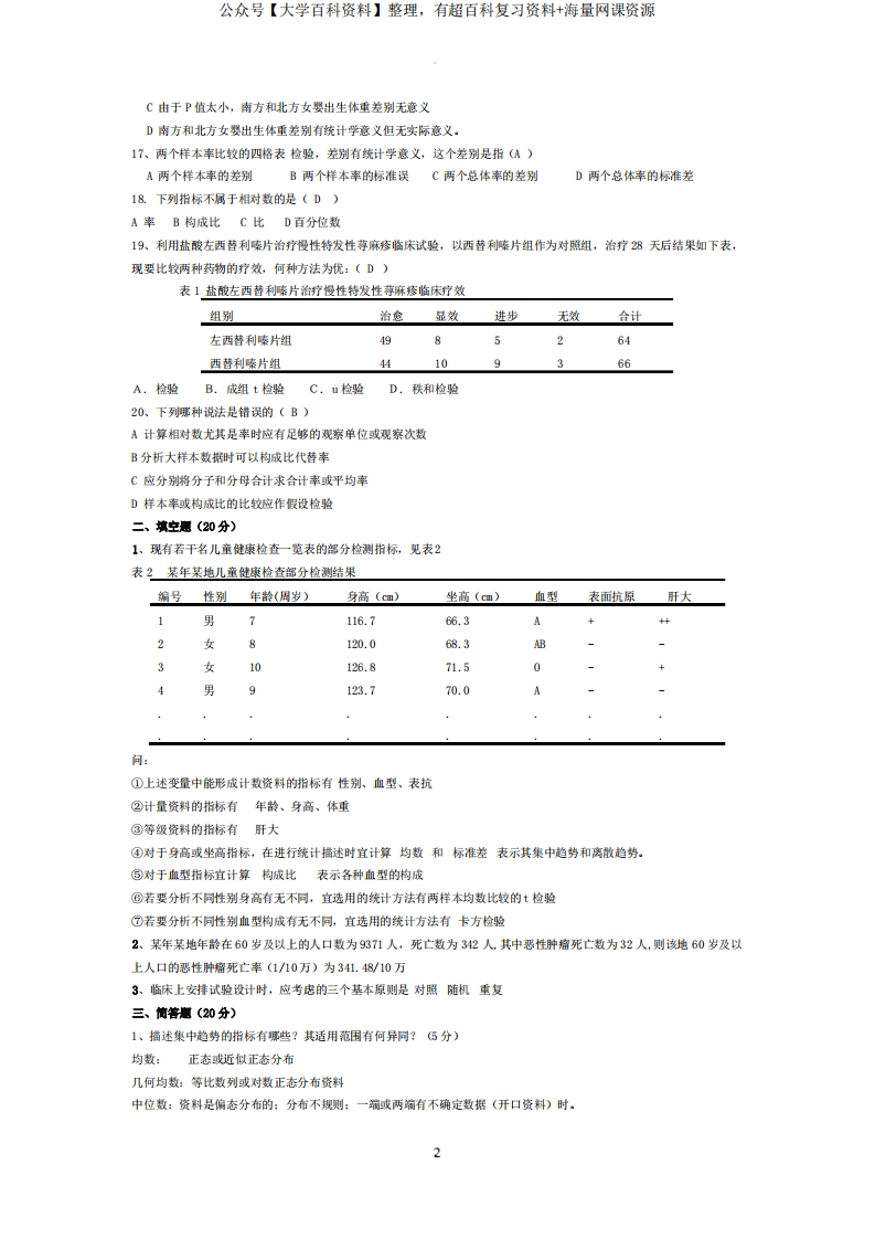 医学统计学试题及答案猴哥6个月前发布关注私信0.41MB9页09149医学统计学试题及答案此内容为免费资源,请登录后查看¥0 登录查看免费资源 第1页 / 共9页 第2页 / 共9页 第3页 / 共9页 该文档为免费文档,您可直接下载完整版进行阅读 © 版权声明文章版权归作者所有,未经允许请勿转载。THE END期末复习 喜欢就支持一下吧点赞49赞赏 分享QQ空间微博QQ好友海报分享复制链接收藏