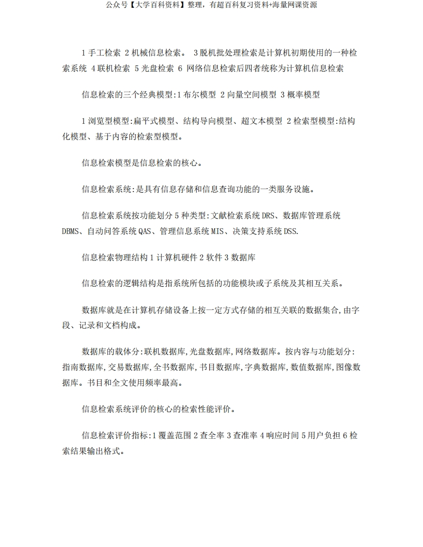 信息检索重点复习资料猴哥6个月前发布关注私信0.18MB5页07635信息检索重点复习资料此内容为免费资源,请登录后查看¥0 登录查看免费资源 第1页 / 共5页 第2页 / 共5页 第3页 / 共5页 该文档为免费文档,您可直接下载完整版进行阅读 © 版权声明文章版权归作者所有,未经允许请勿转载。THE END期末复习 喜欢就支持一下吧点赞35赞赏 分享QQ空间微博QQ好友海报分享复制链接收藏