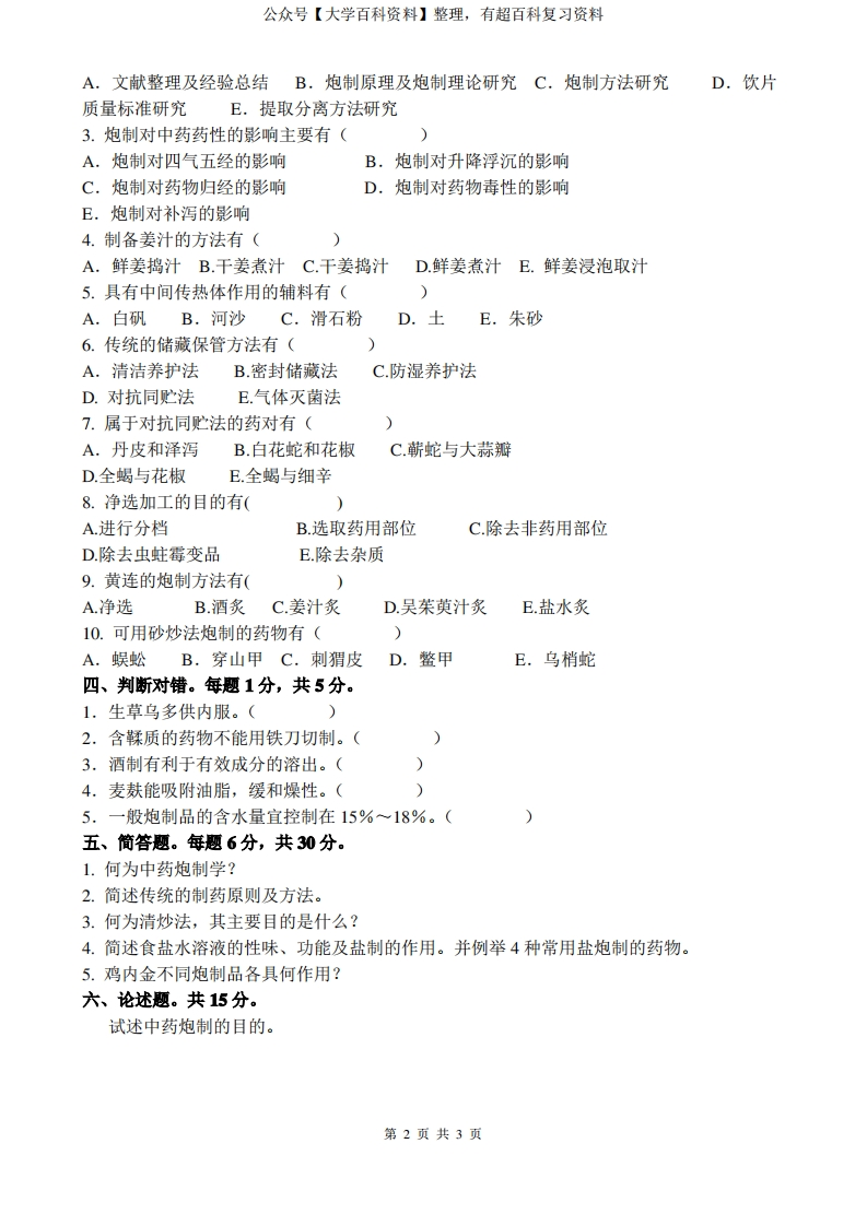 (完整版)中药炮制学试题及答案猴哥6个月前发布关注私信0.14MB3页06847(完整版)中药炮制学试题及答案此内容为免费资源,请登录后查看¥0 登录查看免费资源 第1页 / 共3页 第2页 / 共3页 第3页 / 共3页 已完成全部阅读,共3页 © 版权声明文章版权归作者所有,未经允许请勿转载。THE END期末复习 喜欢就支持一下吧点赞47赞赏 分享QQ空间微博QQ好友海报分享复制链接收藏