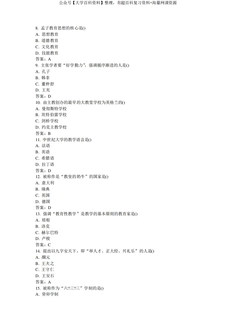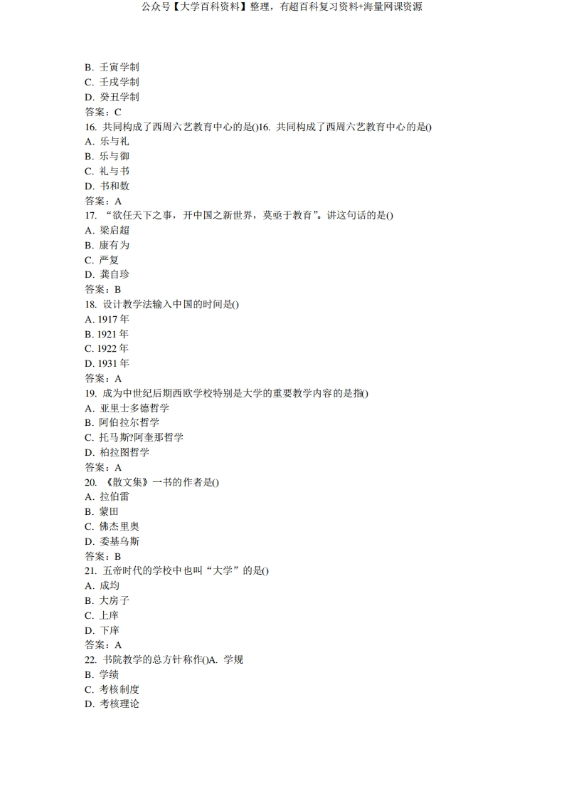 中外教育简史试题和答案-学习资源网 - 分享优质学习资料