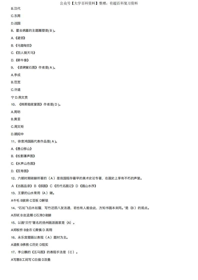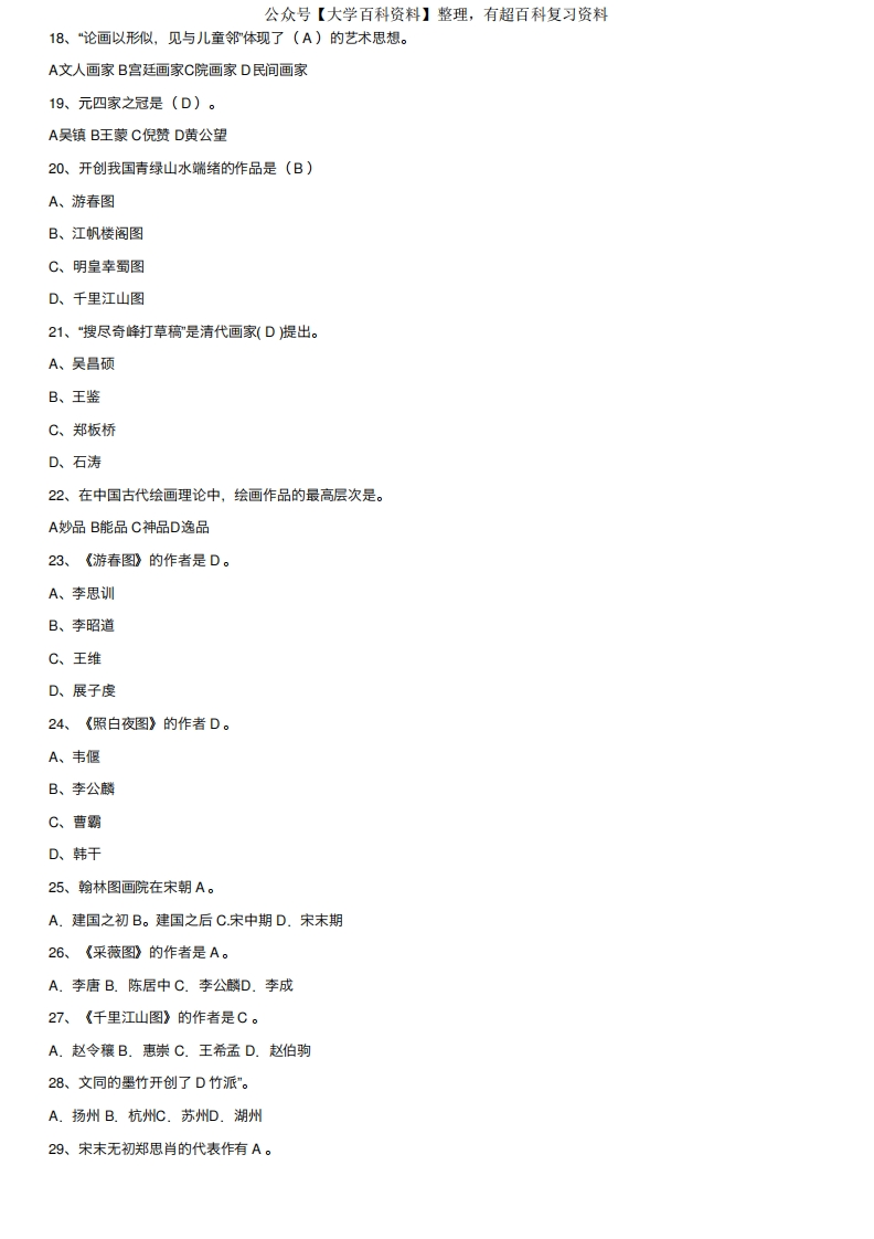 答案中国美术史试题4套总结猴哥6个月前发布关注私信1.36MB11页08034答案中国美术史试题4套总结此内容为免费资源,请登录后查看¥0 登录查看免费资源 第1页 / 共11页 第2页 / 共11页 第3页 / 共11页 该文档为免费文档,您可直接下载完整版进行阅读 © 版权声明文章版权归作者所有,未经允许请勿转载。THE END期末复习 喜欢就支持一下吧点赞34赞赏 分享QQ空间微博QQ好友海报分享复制链接收藏