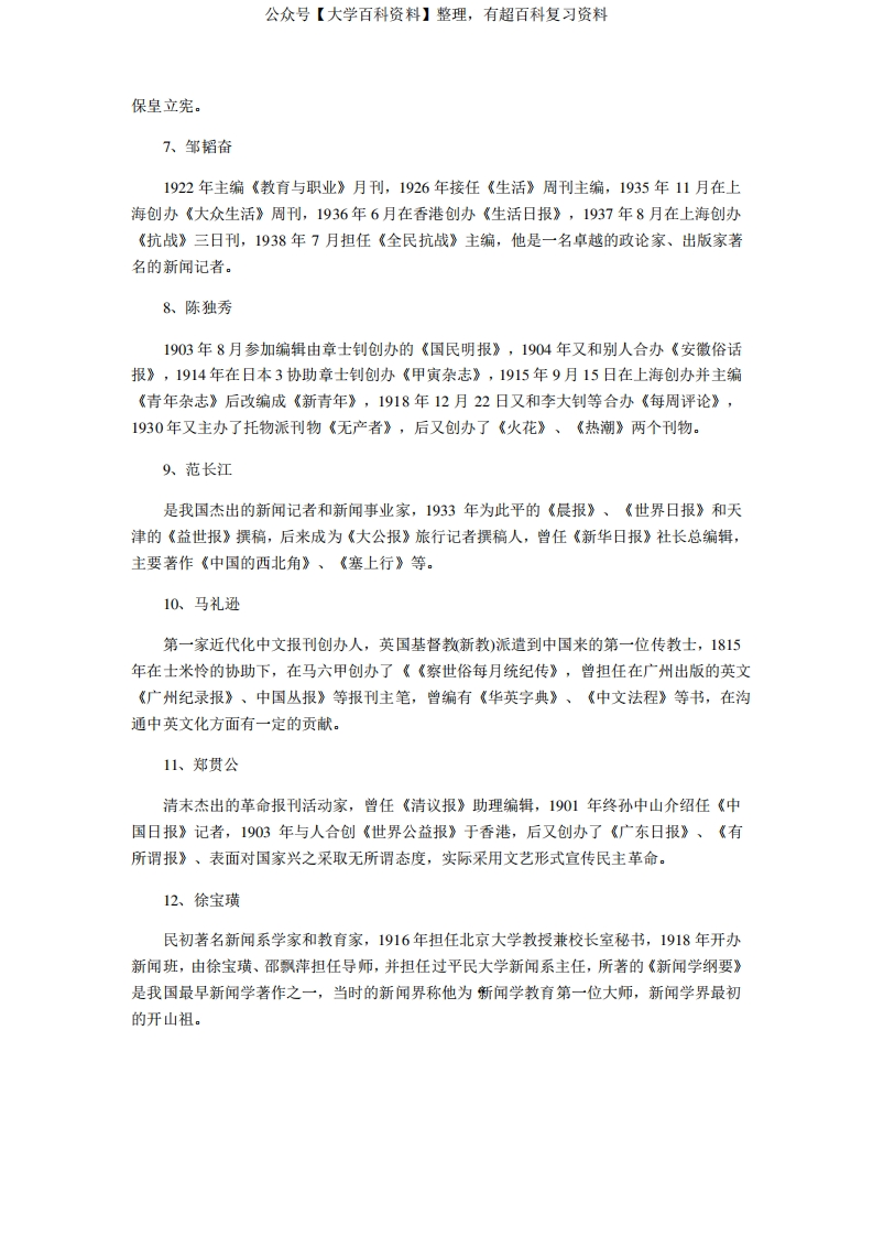 《中国新闻事业史》知识点名人篇猴哥6个月前发布关注私信0.11MB2页05754《中国新闻事业史》知识点名人篇此内容为免费资源,请登录后查看¥0 登录查看免费资源 第1页 / 共2页 第2页 / 共2页 已完成全部阅读,共2页 © 版权声明文章版权归作者所有,未经允许请勿转载。THE END期末复习 喜欢就支持一下吧点赞54赞赏 分享QQ空间微博QQ好友海报分享复制链接收藏