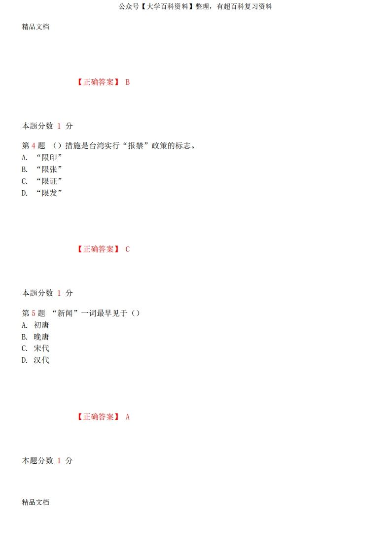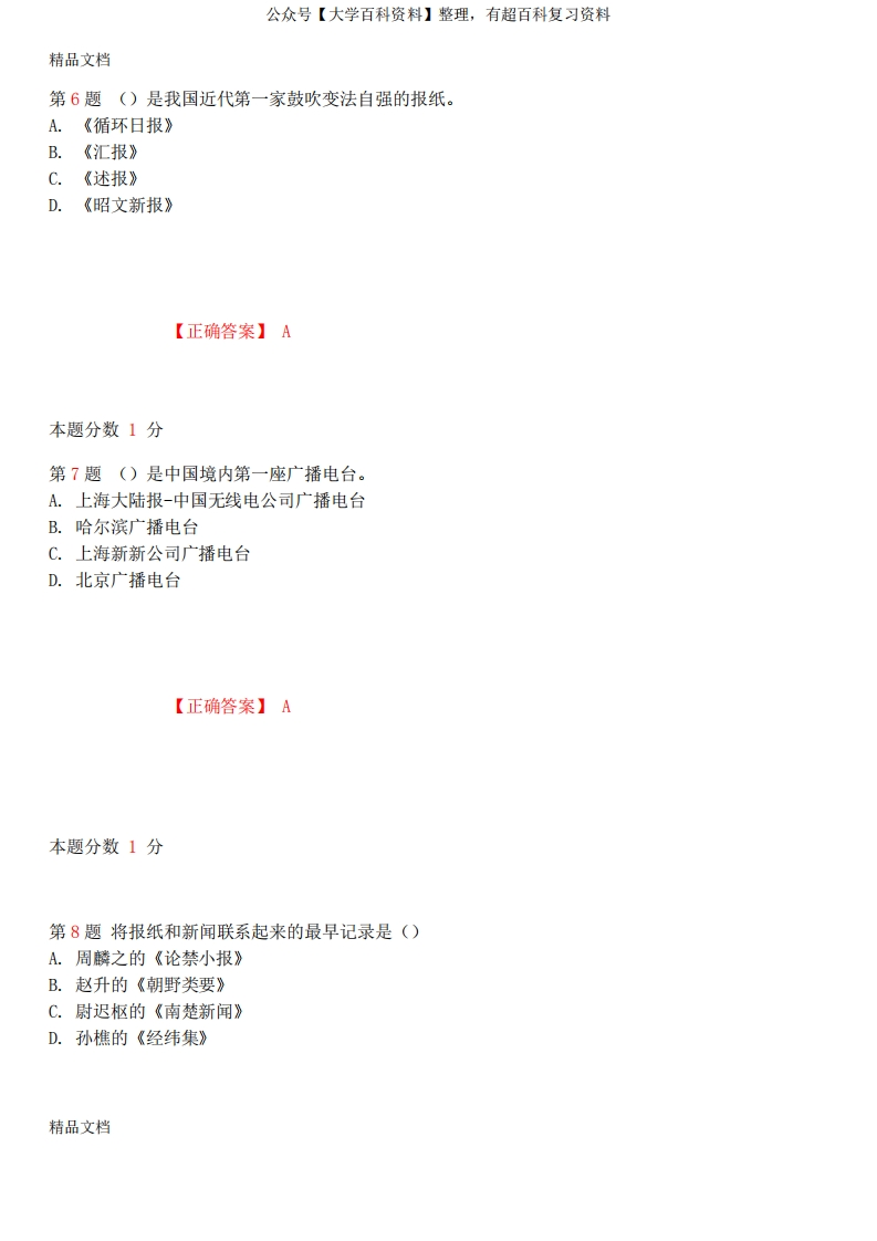 最新年10月全国自考《中国新闻事业史》考前试题和答案00653资料猴哥6个月前发布关注私信0.67MB21页05146最新年10月全国自考《中国新闻事业史》考前试题和答案00653资料此内容为免费资源,请登录后查看¥0 登录查看免费资源 第1页 / 共21页 第2页 / 共21页 第3页 / 共21页 该文档为免费文档,您可直接下载完整版进行阅读 © 版权声明文章版权归作者所有,未经允许请勿转载。THE END期末复习 喜欢就支持一下吧点赞46赞赏 分享QQ空间微博QQ好友海报分享复制链接收藏