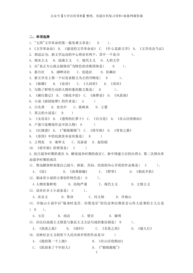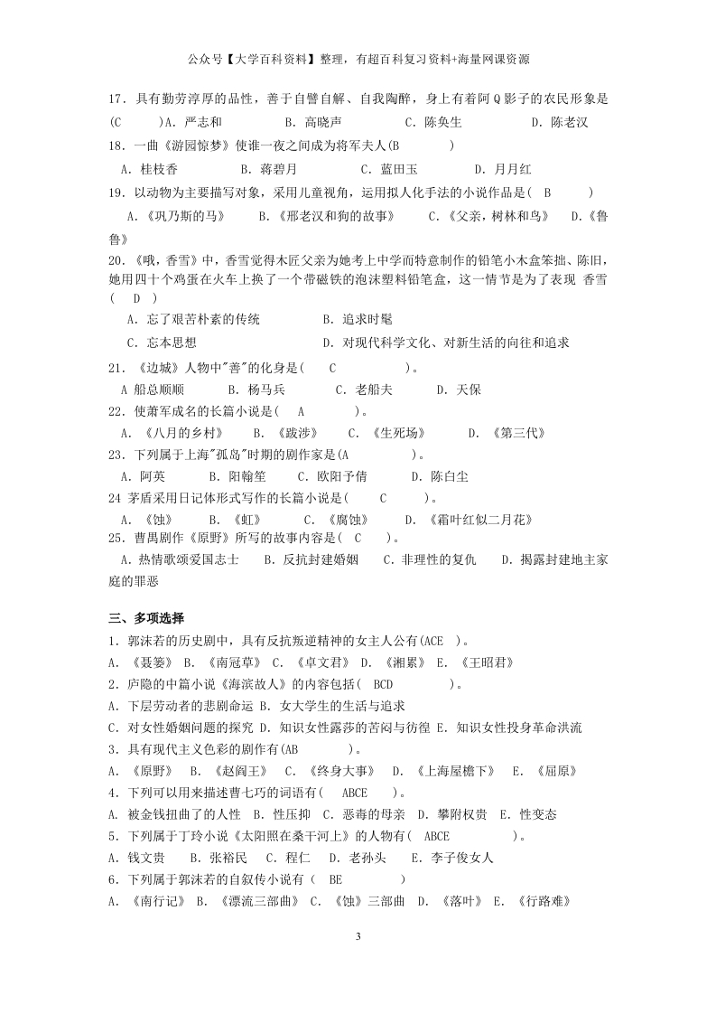 《中国现当代文学史》练习题猴哥6个月前发布关注私信0.12MB21页07152《中国现当代文学史》练习题此内容为免费资源,请登录后查看¥0 登录查看免费资源 第1页 / 共21页 第2页 / 共21页 第3页 / 共21页 该文档为免费文档,您可直接下载完整版进行阅读 © 版权声明文章版权归作者所有,未经允许请勿转载。THE END期末复习 喜欢就支持一下吧点赞52赞赏 分享QQ空间微博QQ好友海报分享复制链接收藏