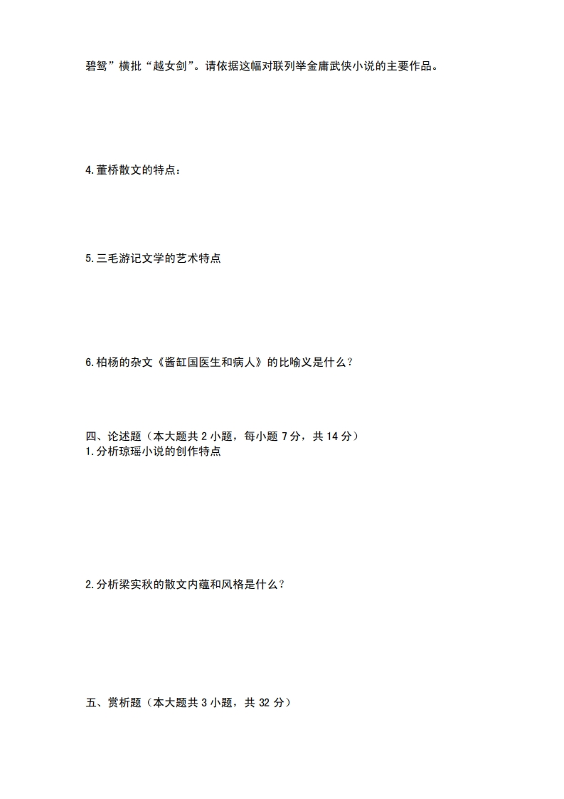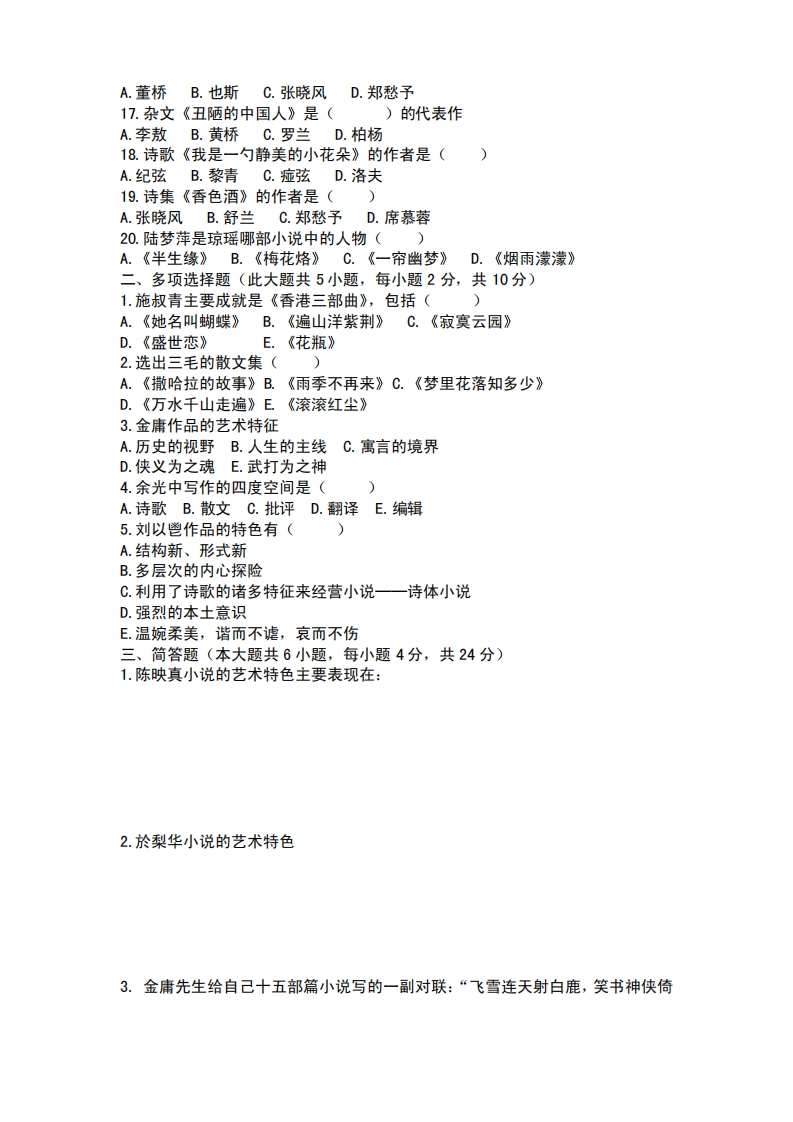 《中国当代文学作品选》期末试题(一)及答案猴哥6个月前发布关注私信0.41MB9页07059《中国当代文学作品选》期末试题(一)及答案此内容为免费资源,请登录后查看¥0 登录查看免费资源 第1页 / 共9页 第2页 / 共9页 第3页 / 共9页 该文档为免费文档,您可直接下载完整版进行阅读 © 版权声明文章版权归作者所有,未经允许请勿转载。THE END期末复习 喜欢就支持一下吧点赞59赞赏 分享QQ空间微博QQ好友海报分享复制链接收藏