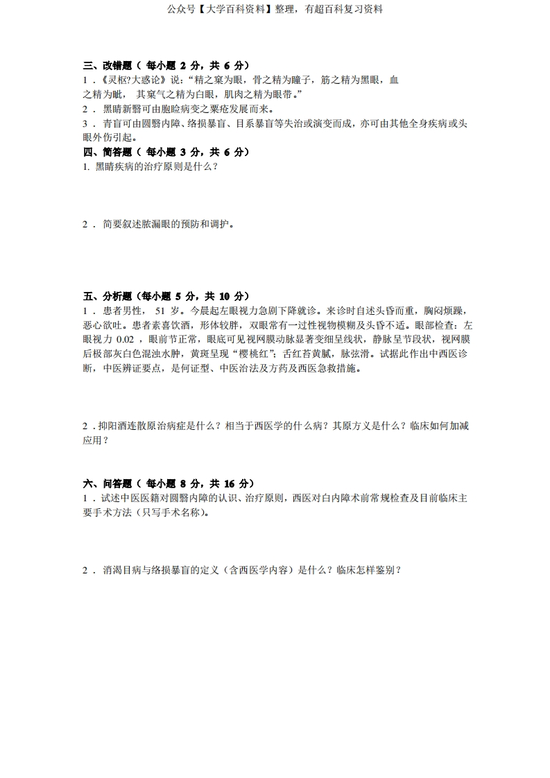 中医眼科学试卷及答案猴哥6个月前发布关注私信0.30MB6页09048中医眼科学试卷及答案此内容为免费资源,请登录后查看¥0 登录查看免费资源 第1页 / 共6页 第2页 / 共6页 第3页 / 共6页 该文档为免费文档,您可直接下载完整版进行阅读 © 版权声明文章版权归作者所有,未经允许请勿转载。THE END期末复习 喜欢就支持一下吧点赞48赞赏 分享QQ空间微博QQ好友海报分享复制链接收藏